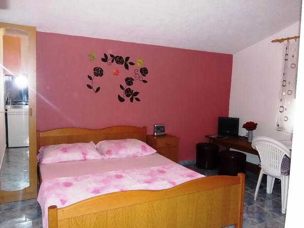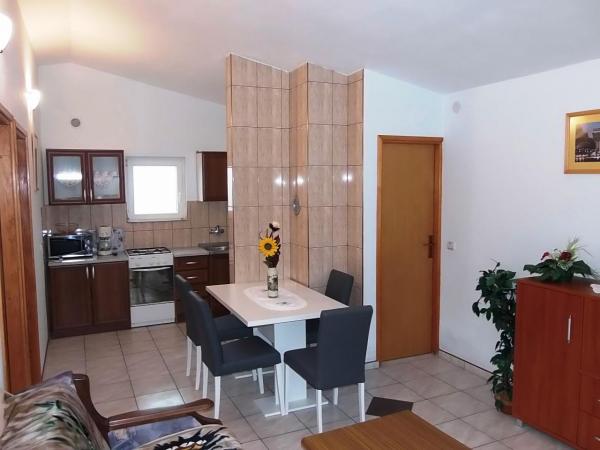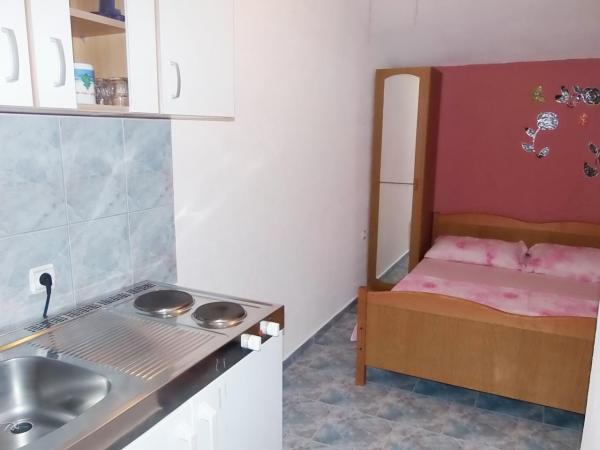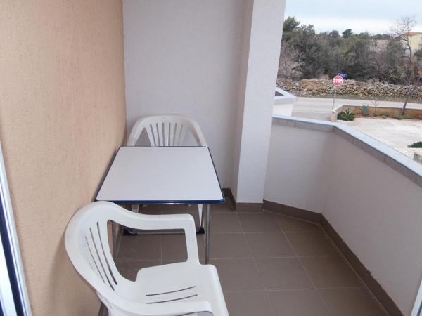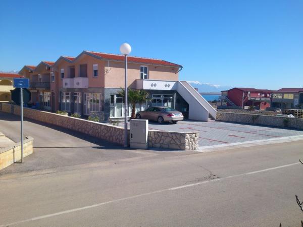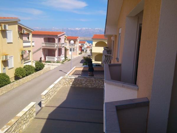 Des appartements et des studios modernes. Plage de sable et de gravier (limpide) se trouve à 2 minutes à pied. Le centre-ville est à 10 minutes. De grands parkings. Nous sommes situés dans la partie nord de l'île. Tous les appartements et studios disposent d'une vue sur la mer, Pag et Velebit.