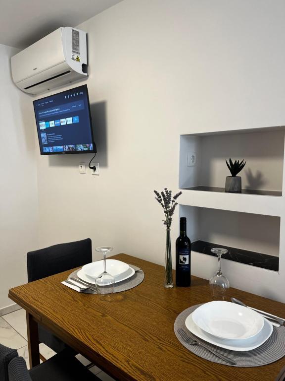Les appartements Šmit bénéficient d'un emplacement idéal en bord de mer, à quelques pas seulement de la plage de Jadro, ce qui en fait un choix parfait pour les vacanciers souhaitant profiter au plus près de la mer et de la plage. Un parking gratuit est mis à la disposition des clients dans la cour clôturée de la résidence, garantissant sécurité et tranquillité d'esprit durant leur séjour. Chaque appartement dispose d'une terrasse avec vue sur la mer, d'un coin salon confortable et d'une télévision. Entièrement équipés, les appartements comprennent une cuisine avec réfrigérateur, micro-ondes et tous les ustensiles nécessaires à la préparation des repas. Chaque appartement possède une salle de bains privative avec douche et la climatisation assure un confort optimal même pendant les chaudes journées d'été. À seulement 5 minutes à pied, vous trouverez à proximité immédiate de la résidence toutes les commodités essentielles de l'île de Vir : restaurants, cafés, boutiques, boulangerie et promenade en bord de mer. Les appartements Šmit constituent ainsi un excellent choix pour les couples, les familles et les vacanciers souhaitant passer des vacances sans voiture.