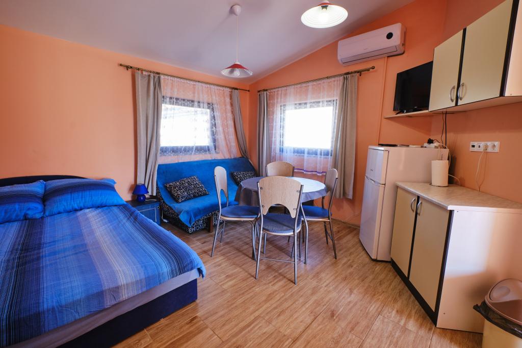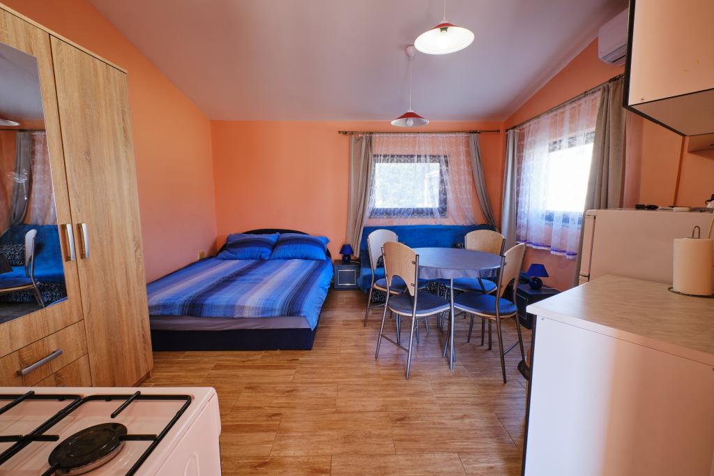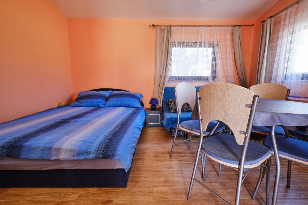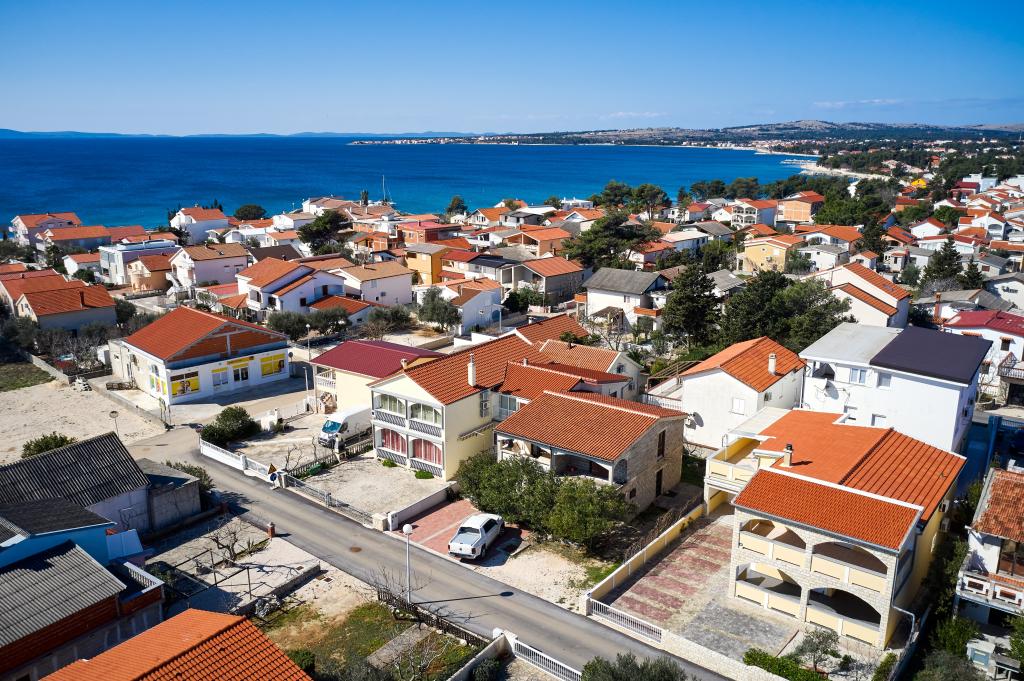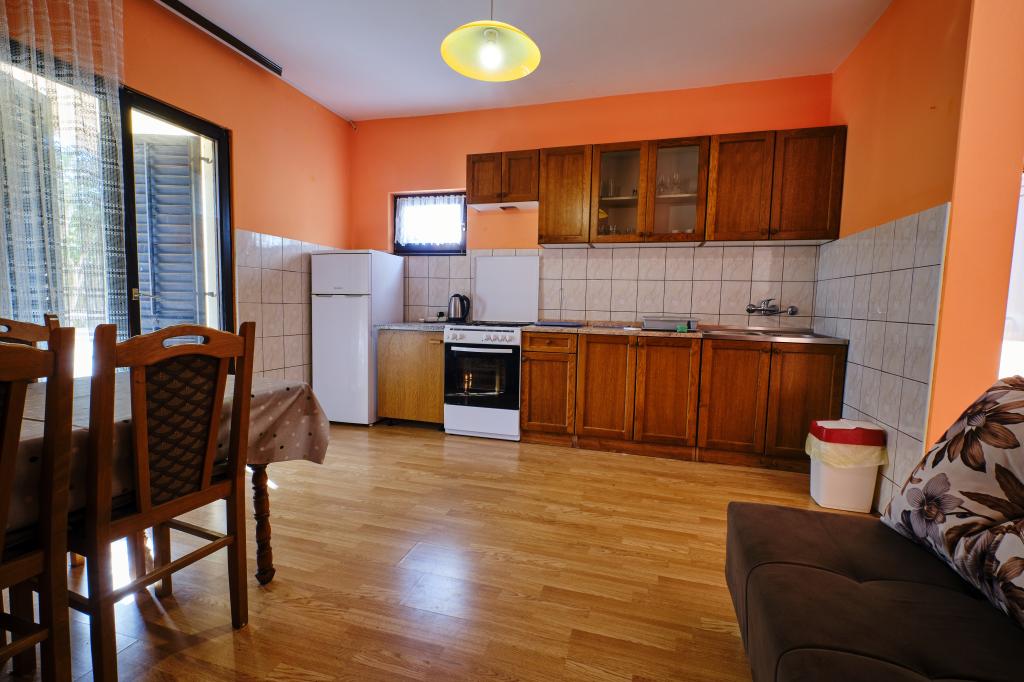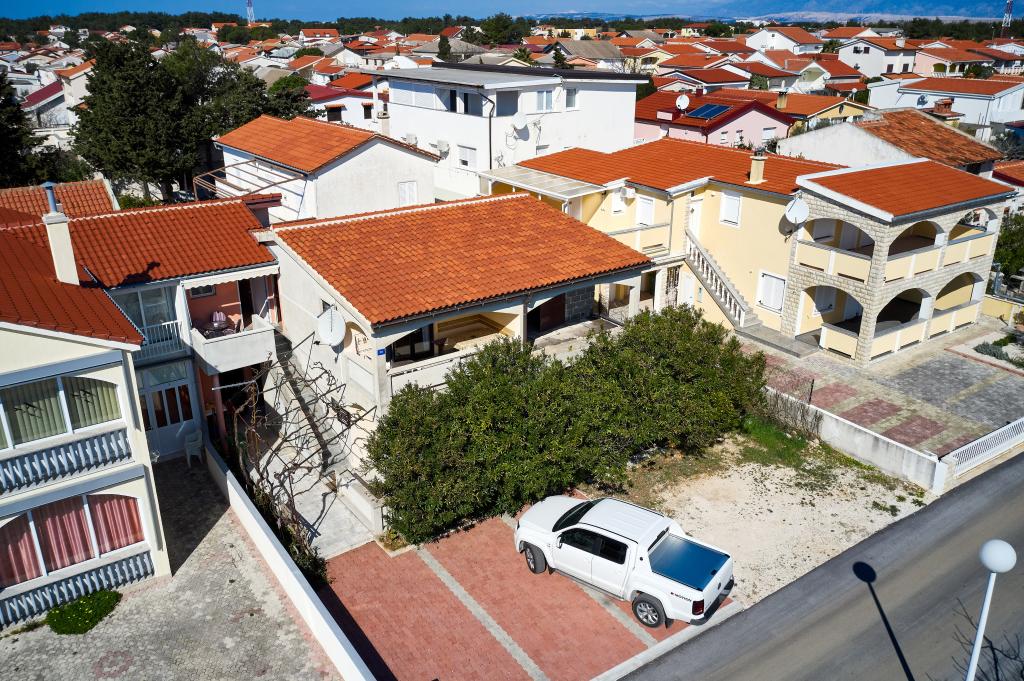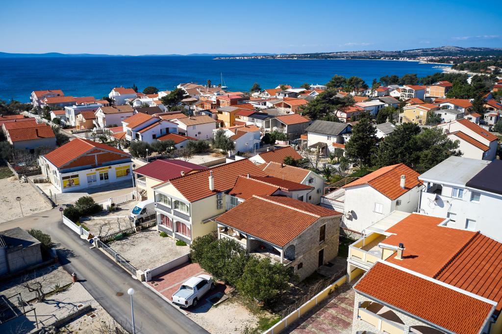 Trois appartements dans une maison de vacances sur l'île de Vir, à 200 m de la plage, 50 m des commerces. Les appartements disposent d'Internet WiFi et de la climatisation, ont des entrées séparées et sont complètement séparés. Deux appartements plus grands se composent chacun d'une chambre avec un lit double, d'une salle de bain et d'un salon avec un canapé-lit (lit d'appoint pour deux) et d'une cuisine. L'appartement au premier étage dispose d'un grand balcon et l'appartement au rez-de-chaussée dispose d'une terrasse. Il y a des places de parking devant le bâtiment. Le troisième plus petit appartement est un studio avec une grande pièce avec un lit double et un lit supplémentaire pour 1 personne (ou 2 enfants plus petits) et des appareils électroménagers, une salle de bain et un couloir séparés. L'appartement dispose d'un petit balcon-terrasse.