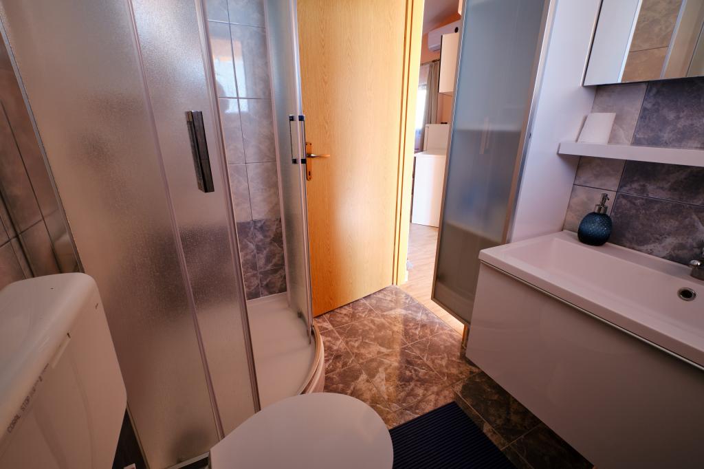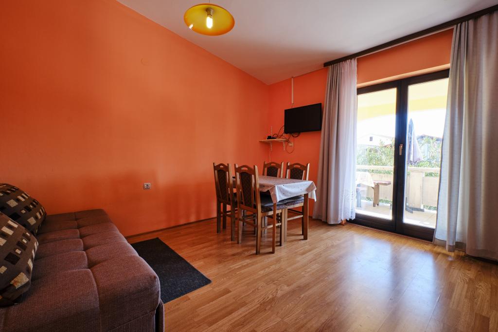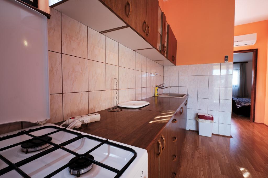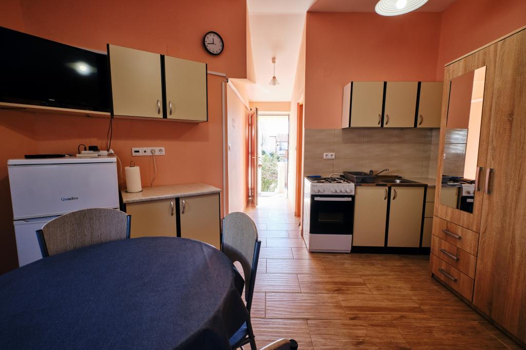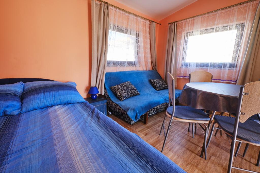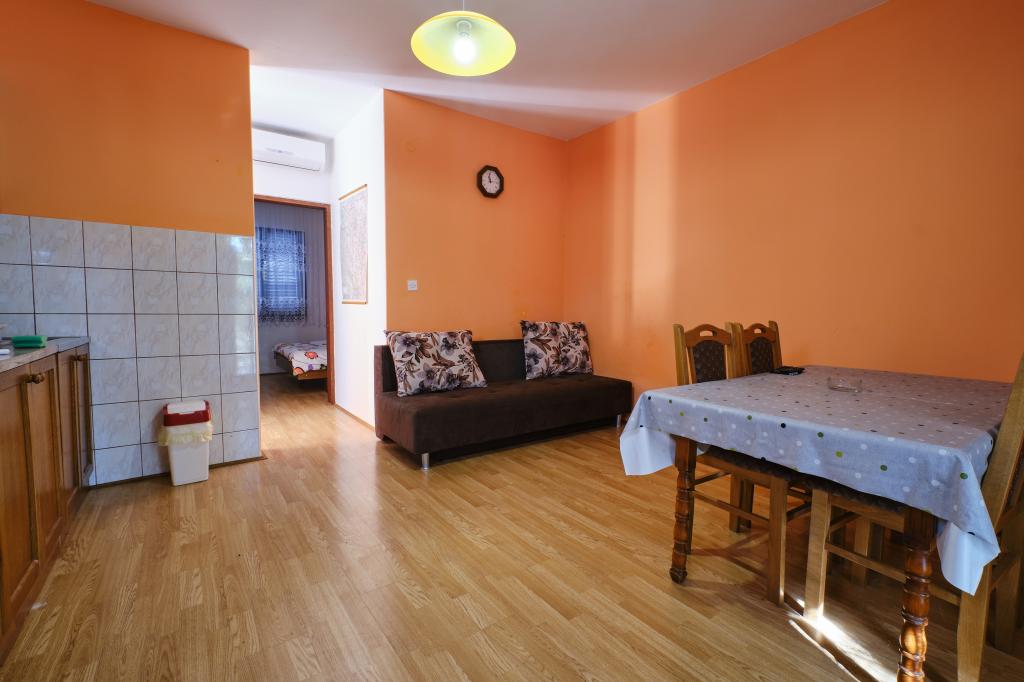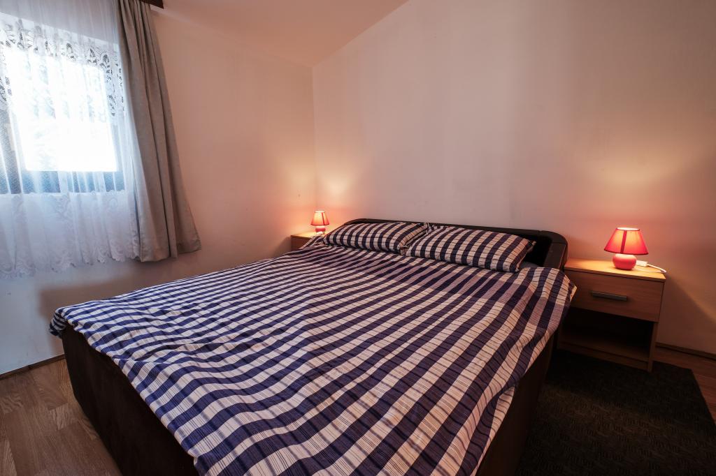 Trois appartements dans une maison de vacances sur l'île de Vir, à 200 m de la plage, 50 m des commerces. Les appartements disposent d'Internet WiFi et de la climatisation, ont des entrées séparées et sont complètement séparés. Deux appartements plus grands se composent chacun d'une chambre avec un lit double, d'une salle de bain et d'un salon avec un canapé-lit (lit d'appoint pour deux) et d'une cuisine. L'appartement au premier étage dispose d'un grand balcon et l'appartement au rez-de-chaussée dispose d'une terrasse. Il y a des places de parking devant le bâtiment. Le troisième plus petit appartement est un studio avec une grande pièce avec un lit double et un lit supplémentaire pour 1 personne (ou 2 enfants plus petits) et des appareils électroménagers, une salle de bain et un couloir séparés. L'appartement dispose d'un petit balcon-terrasse.