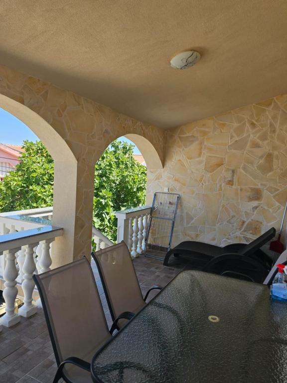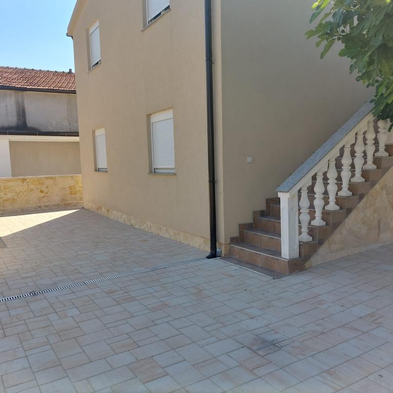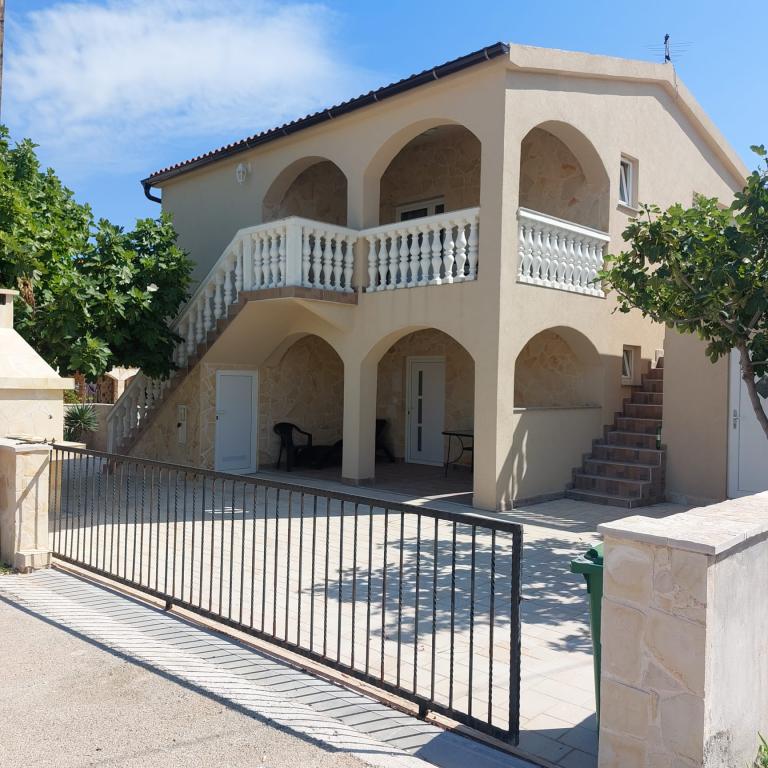 Deux appartements à louer avec de spacieuses terrasses dans un quartier calme de l'île de Vir. Convient aux couples ou aux familles avec enfants. La plage et toutes les commodités essentielles sont situées à 300m du bâtiment. Chaque appartement dispose de deux places de parking et de la possibilité d'utiliser le four.