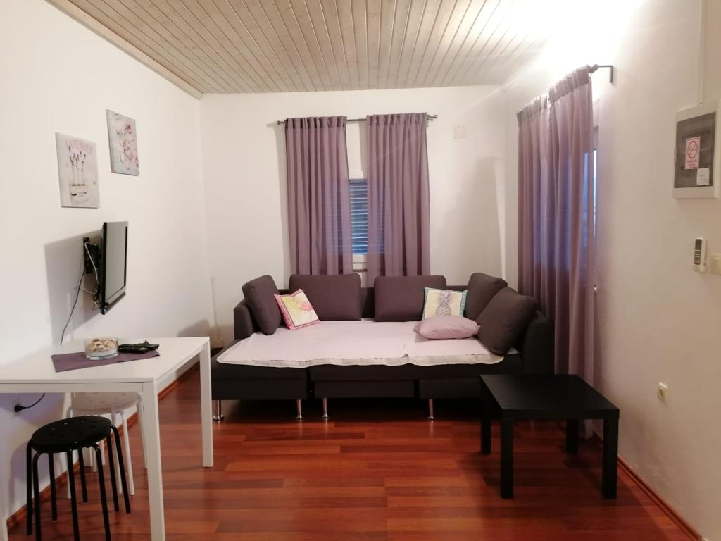 L'appartement était spécieux et très propre. Parfaitement équipé - dans la cuisine, vous trouverez tout le nécessaire pour préparer un dîner, les moustiquaires sont dans les fenêtres et les serviettes fournies sont de couleurs différentes (cela m'a plu le plus) plus de deviner laquelle des 4 serviettes blanches dans le mien) . Il y a seulement 2 appartements dans la maison et le propriétaire (très serviable et sympathique) est sur place, donc vous ne vous sentez pas comme un fournisseur d'argent sans nom mais comme un invité attendu. Maison située dans la partie non encombrée et paisible de Vir, pas de discothèques, supermarchés ou restaurants dans les environs.