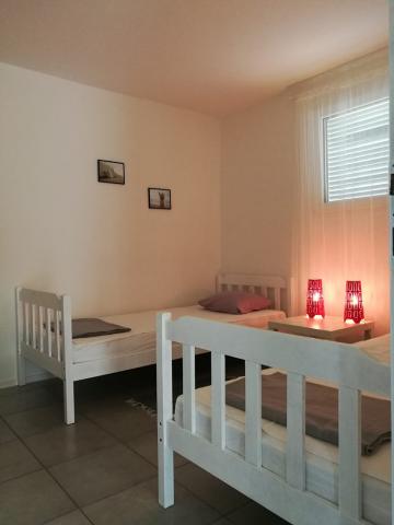 Les appartements sont situés dans une partie plus calme de l'île. App 2 2 est situé au premier étage, a une vue partielle sur la mer et une grande terrasse. L'App 4 2 est situé au rez-de-chaussée et dispose d'une grande terrasse. 2-3 places de parking sont prévues. Il convient aux familles avec enfants en raison de la cour clôturée et de la proximité de la plage (à 200 mètres de l'appartement).