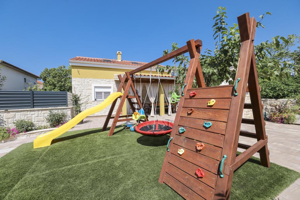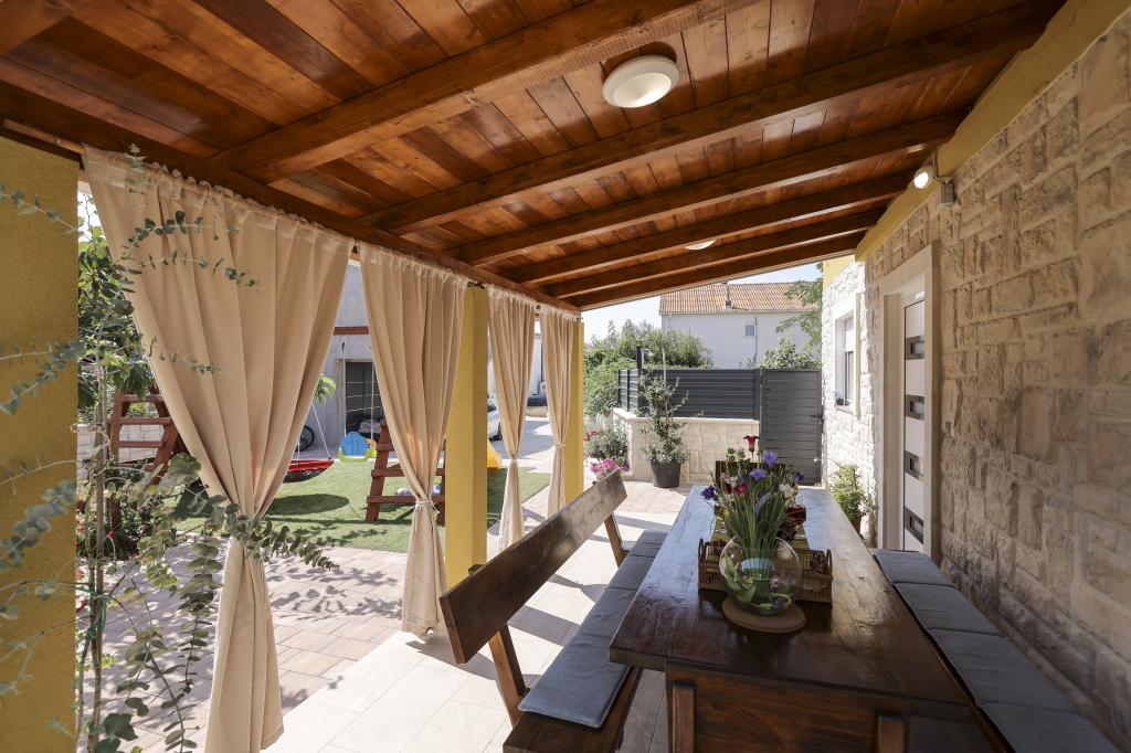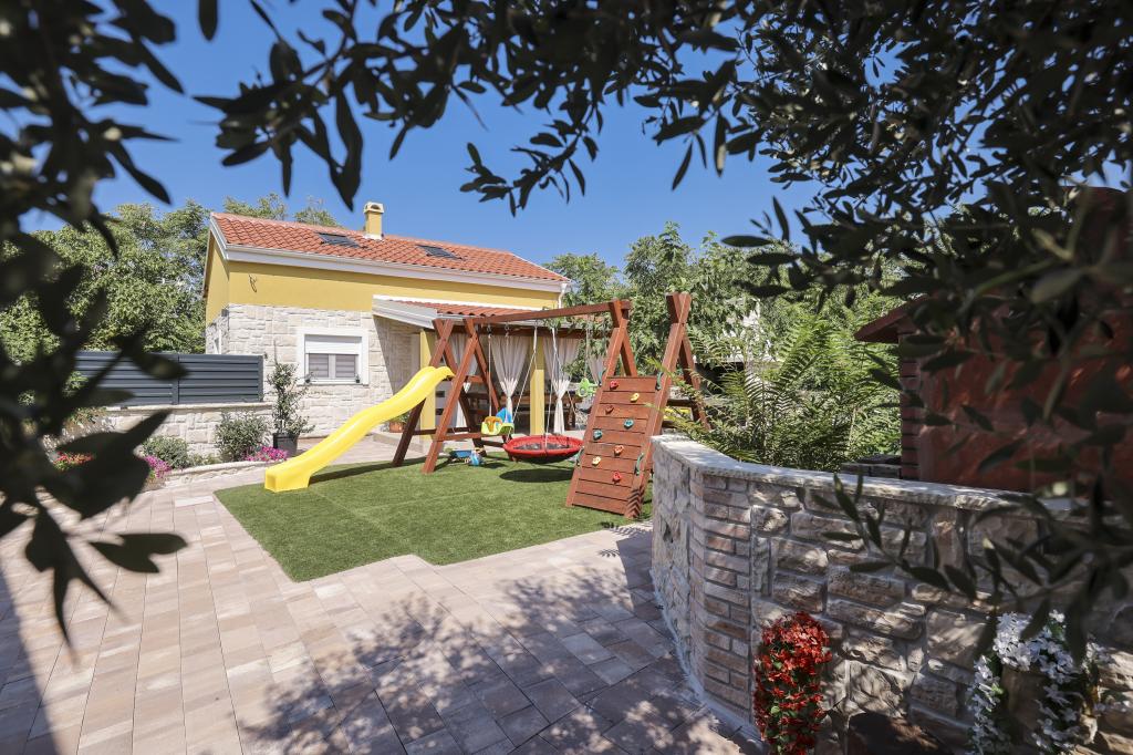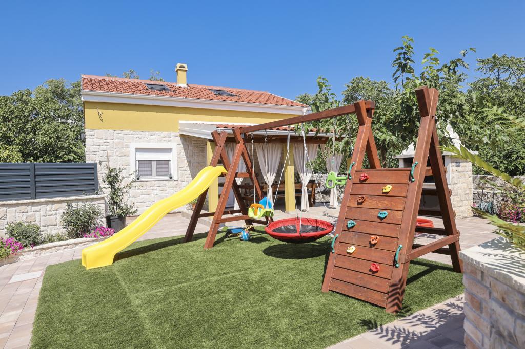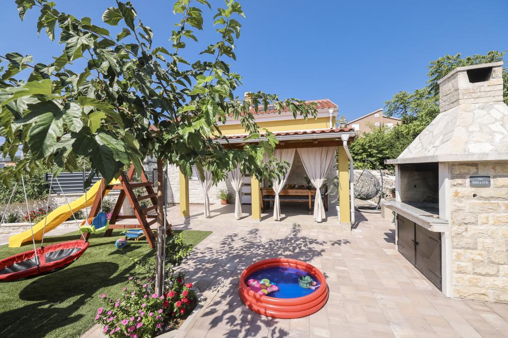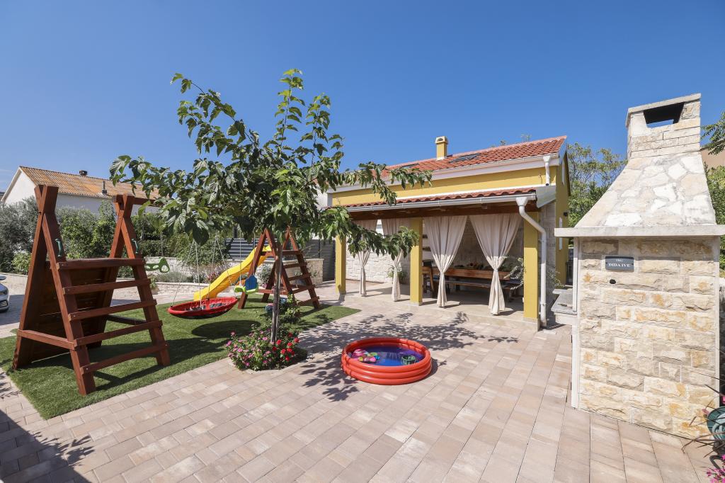 Cette nouvelle maison de vacances est située en plein centre de l'île de Vir. Caché du bruit et de la vue. La maison dispose de 2 chambres avec un lit double et un lit double sur la mezzanine. La capacité totale est de 6 personnes. Il y a également deux salles de bains, une dans le grenier et l'autre au rez-de-chaussée, équipées d'un lave-linge et d'un sèche-linge. La cuisine est également équipée de tous les appareils électroménagers. Dans la cour il y a une terrasse couverte, un barbecue et une aire de jeux pour enfants. Un parking est à la disposition des clients ainsi qu'une place dans le garage. Tous les voisins sont à une distance décente et vous avez de l'intimité. Si vous souhaitez être au centre, proche de toutes les commodités, et pourtant à l'abri des regards, cette maison est le bon choix pour vous. Nous attendons avec impatience votre arrivée.