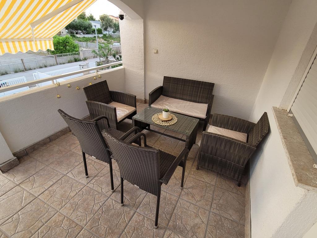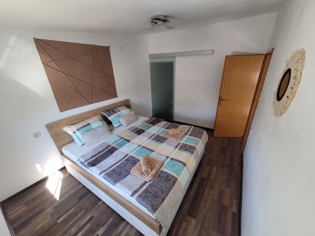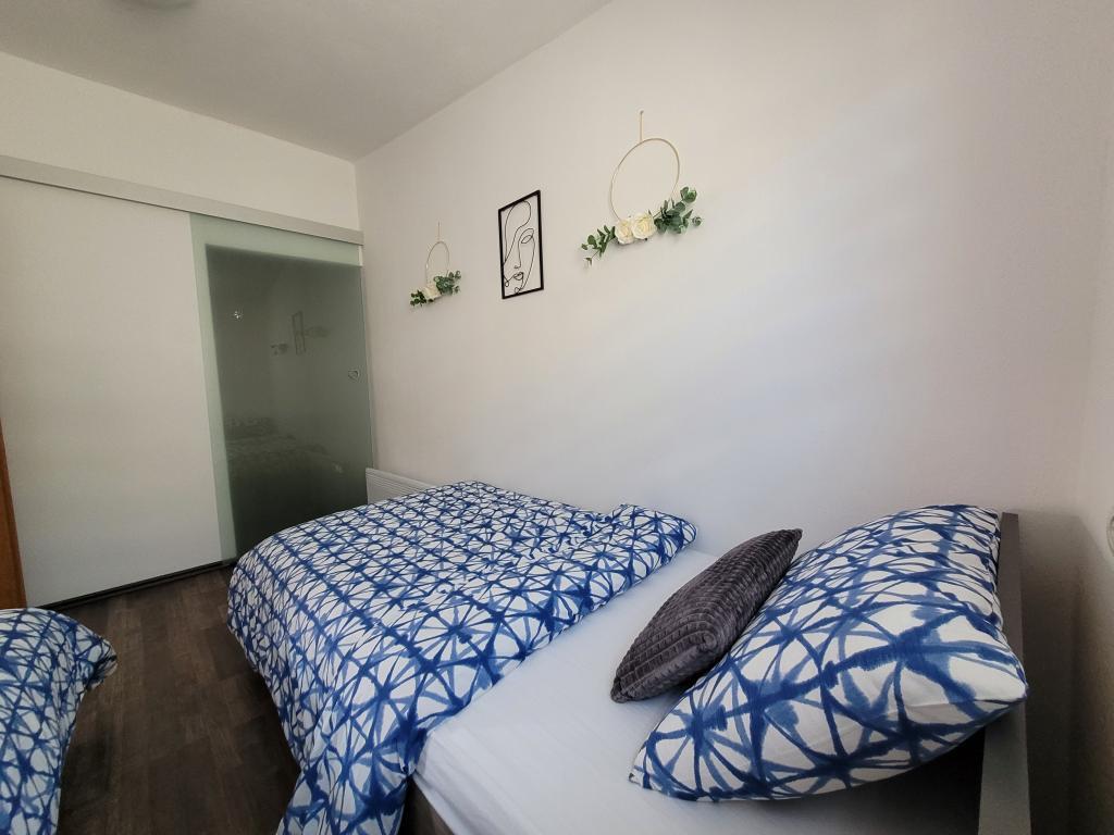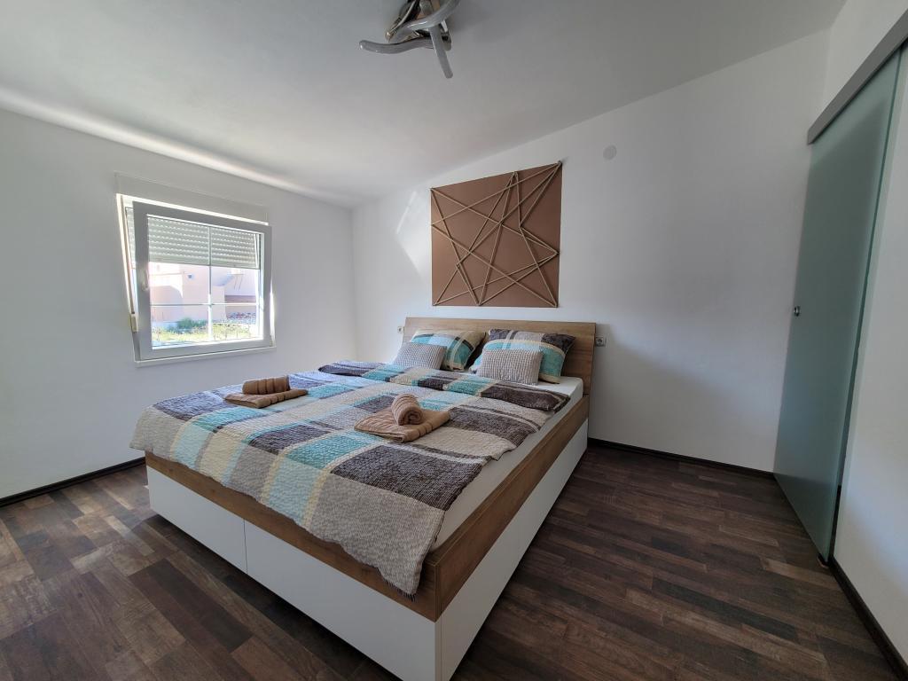 Appartement à louer pour 4+2 personnes sur l'île de Vir, Žitna I., dans une rue sans issue et calme, parking prévu pour 3 véhicules, cour, terrasse, barbecue, distance de la plage et du centre de Vir 750 mètres , 8 minutes à pied ou 2 minutes en voiture Un "Clubcar" pour 4 personnes est fourni avec l'appartement moyennant un supplément de 15 euros par jour, et il est possible de louer un cyclomoteur électrique pour 15 euros par jour. L'appartement se compose de deux chambres, d'une salle de bain avec WC, d'une cuisine et d'un salon avec salle à manger, dans le salon il y a un canapé-lit. Climatisation, wi-fi, TV, micro-ondes, machine à glaçons, sèche-cheveux, fer à repasser fourni.