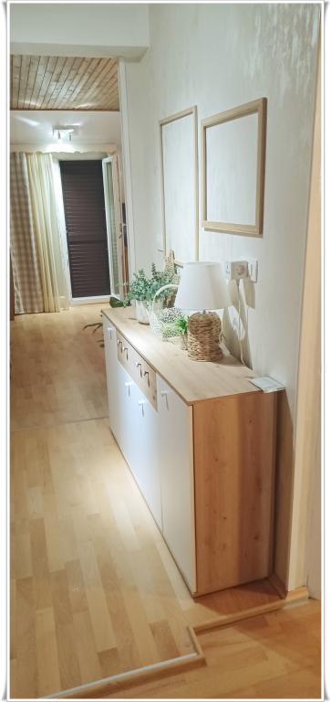 L'appartement se situe en plein centre de Vodice et comprend un séjour avec canapé, une cuisine, deux chambres doubles avec un grand lit et un lit d'enfant, deux salles de bains avec douches, deux chauffe-eau, deux climatiseurs, deux ventilateurs de plafond et une terrasse avec vue sur la mer, le port de plaisance et le parc. Il est entièrement équipé pour un long séjour (internet, lave-linge, lave-vaisselle, cuisine équipée, linge de toilette, sèche-cheveux, fer à repasser). Il se trouve à environ 350 m des plages est et ouest. https://youtu.be/boq1Agcy7bs