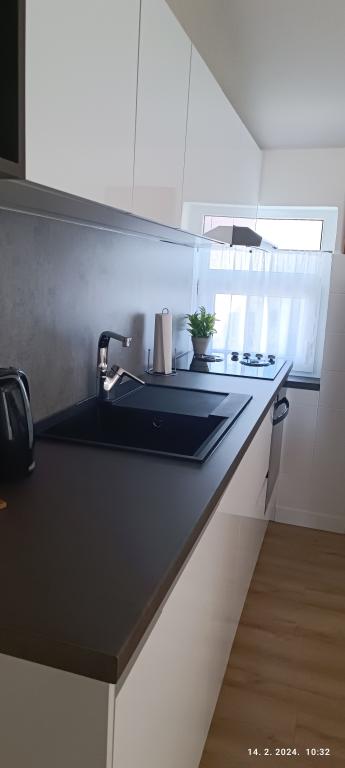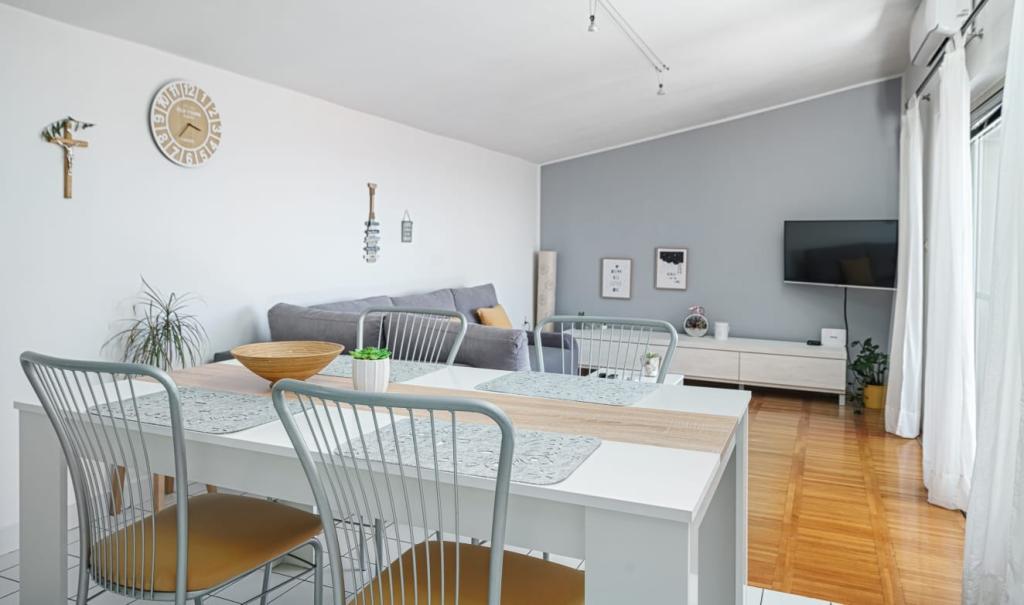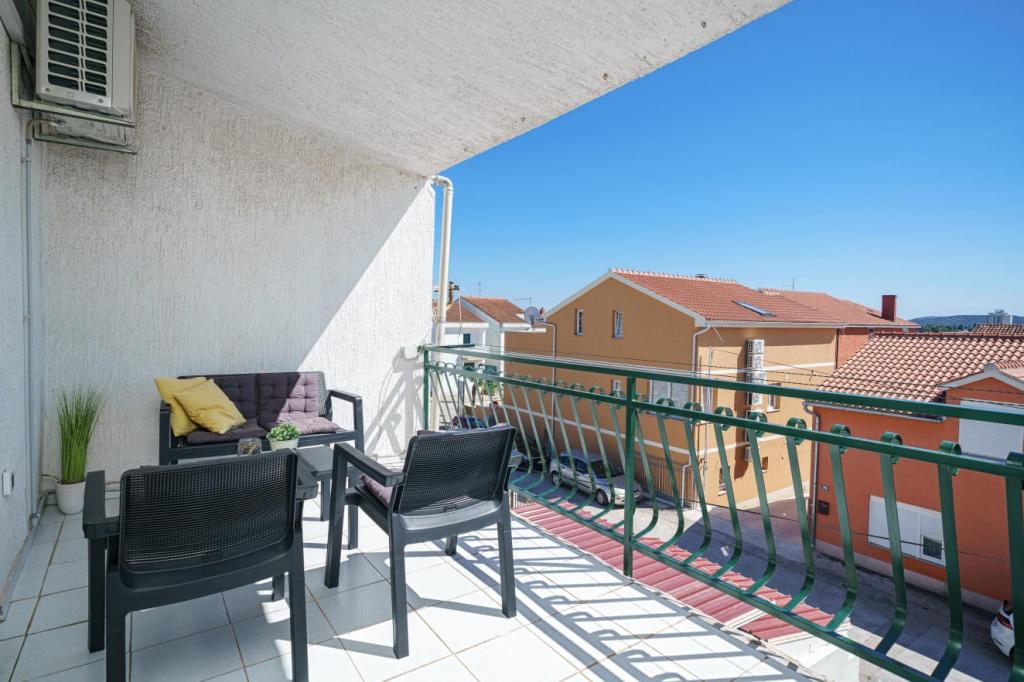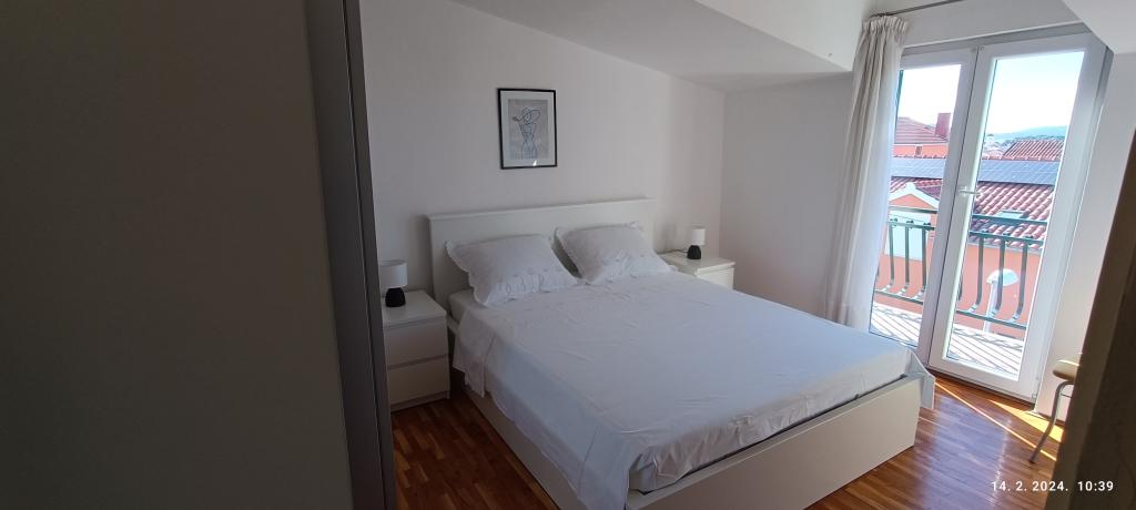 Appartement pour quatre personnes, deux chambres, grand séjour avec cuisine ouverte, salle de bains et grand balcon. L'appartement fait 65 m². Il est situé dans un quartier calme. La plage et le centre-ville sont à dix minutes à pied.