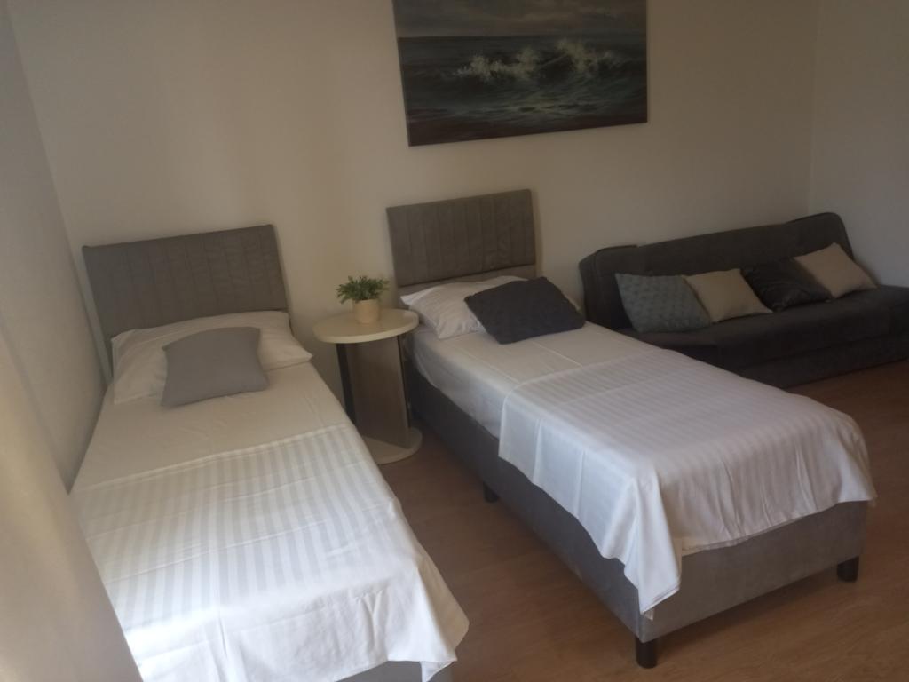 Nous étions en Juillet avec 5 personnes (3 enfants, 2 adultes) dans l'appartement. L'appartement est soigné et propre. L'appartement dispose de tout ce dont vous avez besoin pour vivre (assez de lits, télévision, réfrigérateur, couverts, congélateur, climatisation, etc.). Dans le jardin il ya une grande table où vous pouvez manger avec des amis. La famille Vranjkovic était gentil, serviable et a aidé avec toutes les questions immédiatement. Les gens autour étaient sympathiques. Je ne peux que recommander l'appartement et je suis aussi heureux de se nouveau sur! :) Sincèrement Tatjana