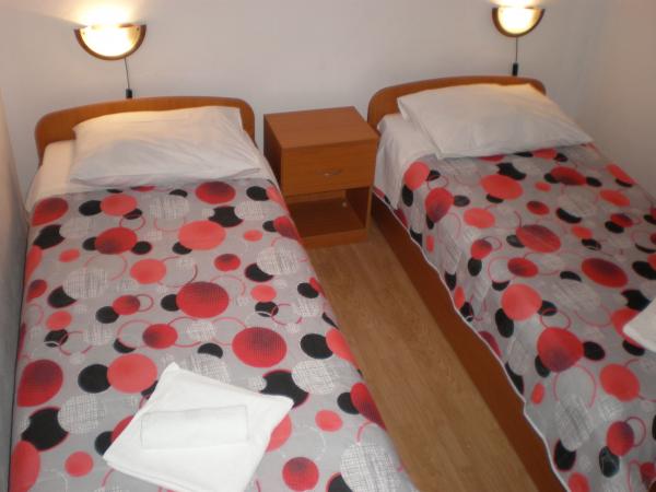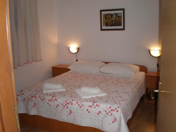 Appartements Bogdan sont situés dans un quartier calme de la ville dans une zone de 1100 m2. Les installations sont situées à moins de 10 minutes du centre-ville et à 15 minutes à pied de la mer. Grand jardin entouré de pelouses, de fleurs et de verdure offre à ses clients un séjour confortable et paisible. Les trois appartements sont situés au rez-de-chaussée. Appartement capacité A1 2 1 personne, Appartement A2 4 1 personne et A-3 6 capacité 2 personnes. Equipement: sièges d'extérieur, balançoires, parking, pour plus d'automobiles, appartement A1 a son propre garage, qui est situé à côté de l'appartement, barbecue. Il y a aussi le tennis de table, aire de jeux pour les enfants. Tous les appartements sont climatisés et équipées; Télévision par satellite, wi-fi, lave-linge, réfrigérateur avec congélateur, petits appareils; cafetière, bouilloire, grille-pain. et tout ce qui est nécessaire pour l'atmosphère de la domesticité. Les hôtes sympathiques sont à la disposition des clients (années d'expérience) pour toute information complémentaire nécessaire ou une aide quelconque.