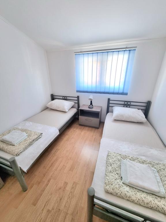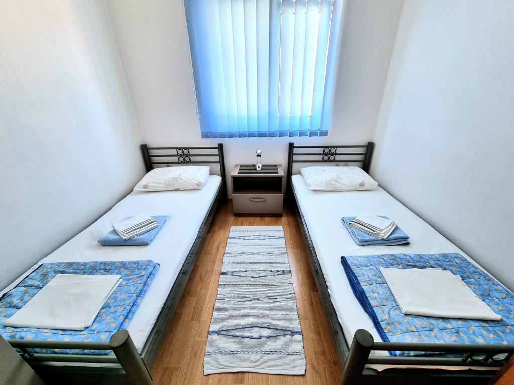 Les appartements sont situés dans un immeuble nouvellement construit dans un endroit calme. L'établissement est à 100 m de la plage et à 15 minutes à pied le long de la mer jusqu'au centre de Vodice. L'appartement ID 9016 est situé au rez-de-chaussée, tandis que l'appartement ID 9017 est situé au premier étage de la maison. Chaque appartement a une entrée séparée et se compose de deux chambres - une avec un lit double et l'autre avec deux lits simples, un salon avec une télévision connectée, une salle de bain, une cuisine entièrement équipée et une terrasse. Dans la cuisine il y a un réfrigérateur avec un congélateur, une cuisinière avec un four, un micro-ondes, une bouilloire pour l'eau et le café, et toute la vaisselle nécessaire à la préparation des repas. Près de l'appartement, vous trouverez des supermarchés, des restaurants, un bar de plage, un café, des installations sportives et de nombreuses autres installations attrayantes.