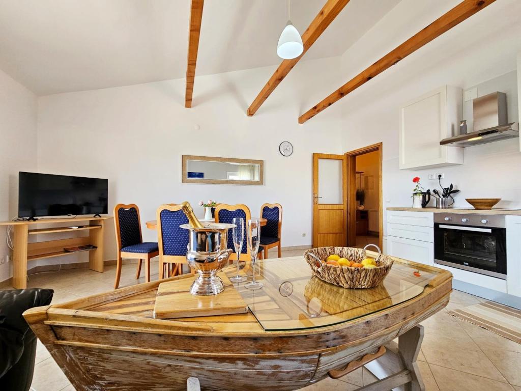 Superbes appartements, très proches de la belle plage, cuisine entièrement équipée, climatisation, TV satellite, grande terrasse avec vue sur la mer. Des propriétaires excitables sont disponibles pour vous aider dans tous les domaines. Description de l'objet et photos les plus cohérentes avec la réalité. Je recommande vivement cet endroit. Nous y retournerons certainement l'année prochaine. Meilleures salutations.