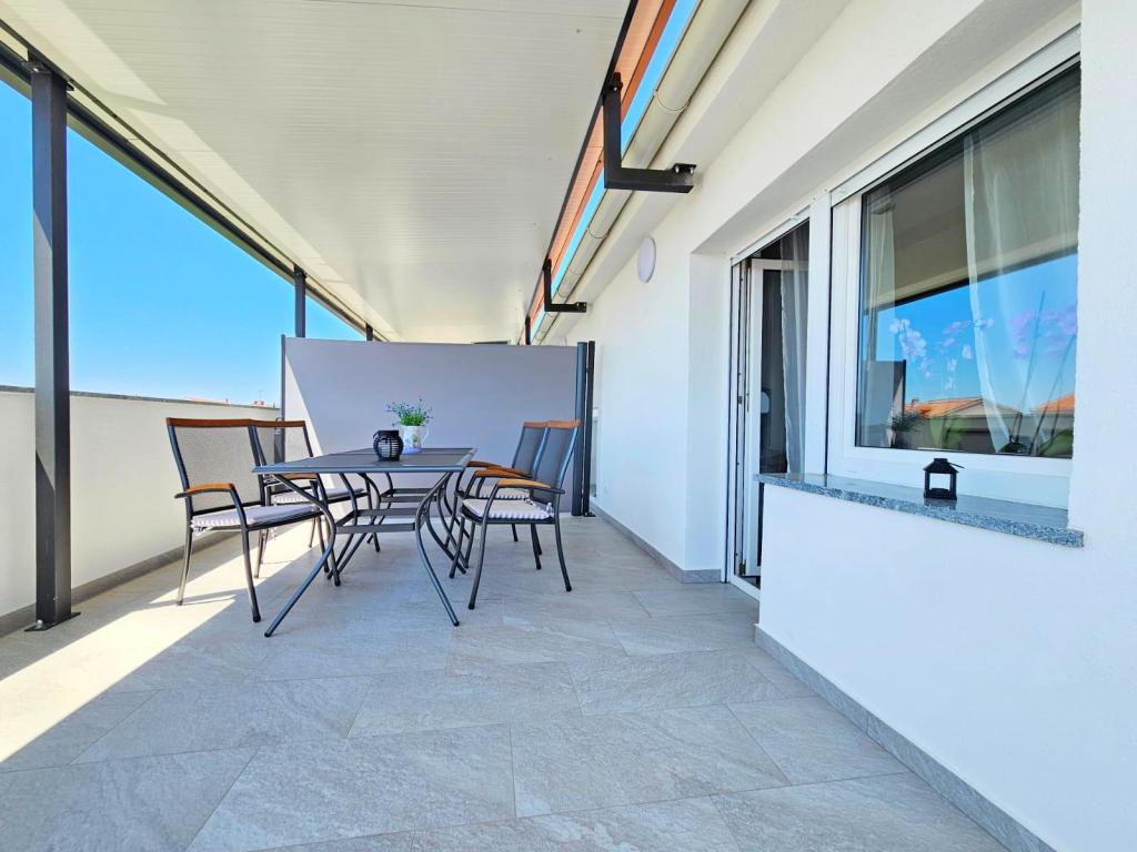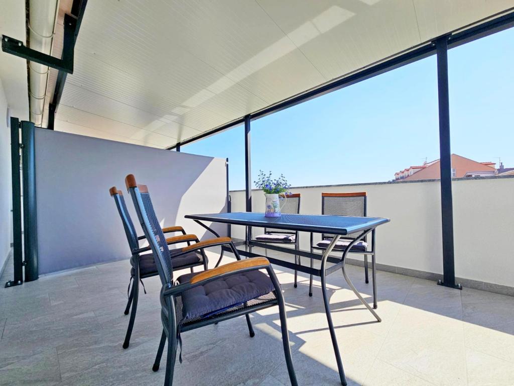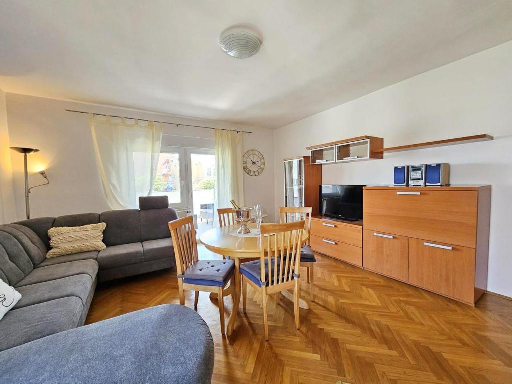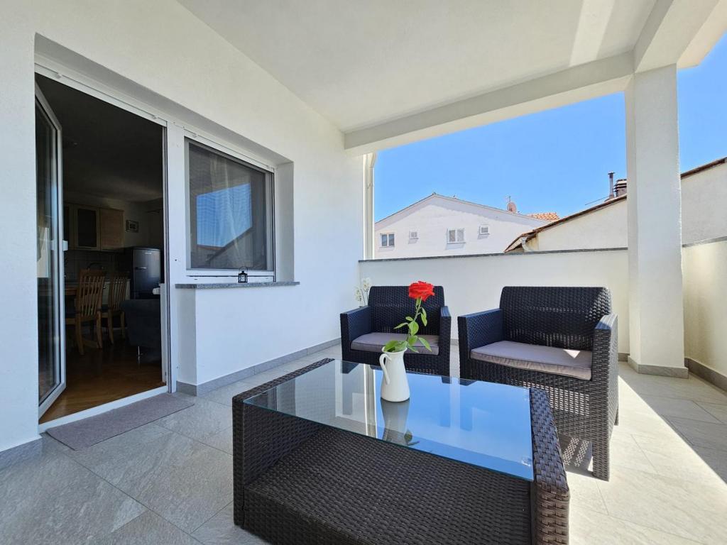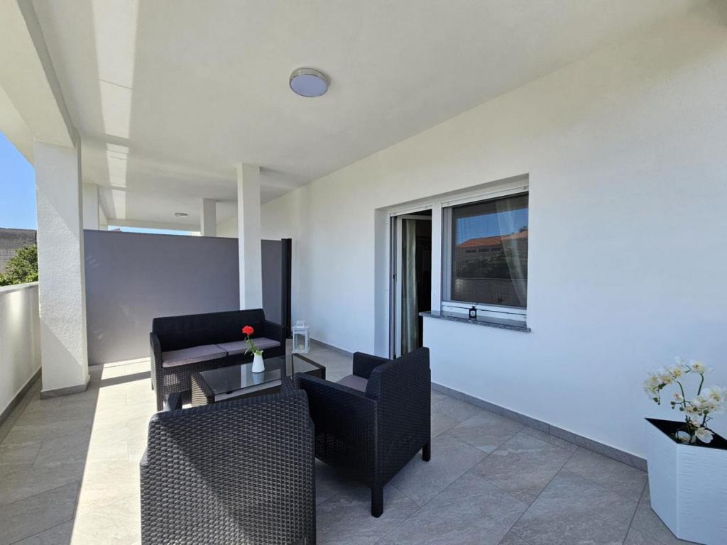 NOUVEAU!!! Accueillez nos chers hôtes dans les appartements spacieux récemment rénovés de 70 m2 dans une maison familiale : un grand salon relié à la cuisine et à la salle à manger et sortie sur une grande terrasse de 16 m2 avec vue sur la mer ; chambre avec lit double et balcon supplémentaire, deuxième chambre avec 2 lits séparés, grande salle de bain et couloir. Au même étage, 2 appartements exactement identiques avec de grandes terrasses nouvellement construites ! L'établissement est situé à 3 minutes de la plage et du premier magasin. Confortable et spacieux ! Propre et bien rangé! Il y a une place de parking sécurisée et couverte dans le bâtiment. WiFi, climatisation, TV satellite, barbecue, douche extérieure, parking sécurisé et taxe de séjour inclus dans le prix ! Pour tout besoin supplémentaire, les hôtes sympathiques sont à votre disposition à tout moment !