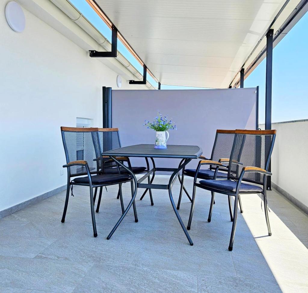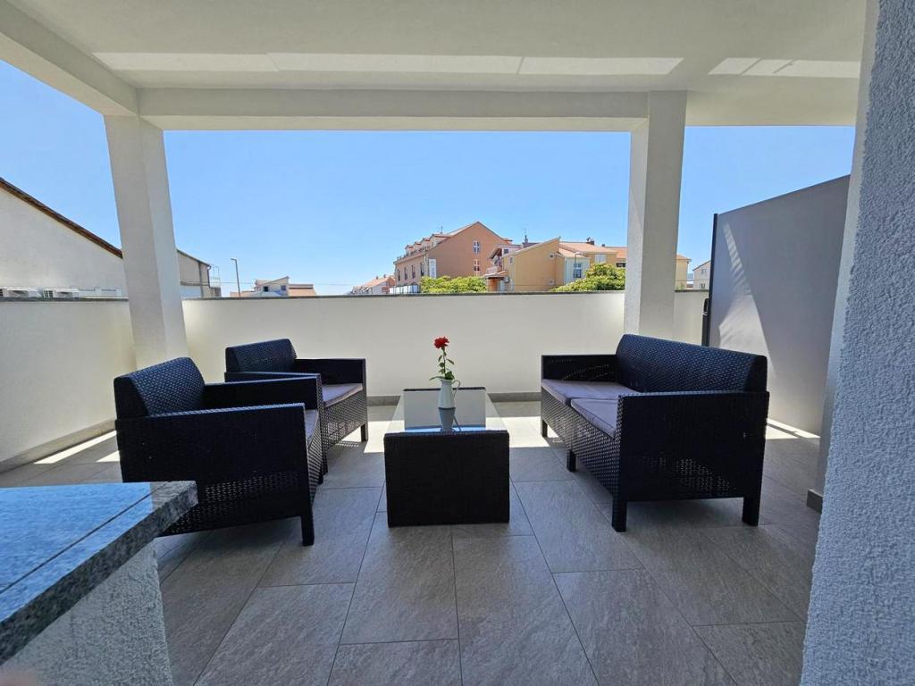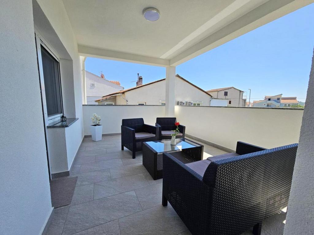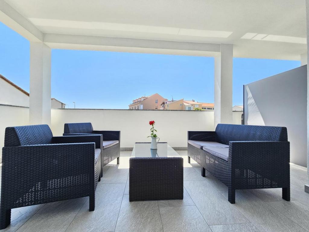 NOUVEAU!!! Accueillez nos chers hôtes dans les appartements spacieux récemment rénovés de 70 m2 dans une maison familiale : un grand salon relié à la cuisine et à la salle à manger et sortie sur une grande terrasse de 16 m2 avec vue sur la mer ; chambre avec lit double et balcon supplémentaire, deuxième chambre avec 2 lits séparés, grande salle de bain et couloir. Au même étage, 2 appartements exactement identiques avec de grandes terrasses nouvellement construites ! L'établissement est situé à 3 minutes de la plage et du premier magasin. Confortable et spacieux ! Propre et bien rangé! Il y a une place de parking sécurisée et couverte dans le bâtiment. WiFi, climatisation, TV satellite, barbecue, douche extérieure, parking sécurisé et taxe de séjour inclus dans le prix ! Pour tout besoin supplémentaire, les hôtes sympathiques sont à votre disposition à tout moment !