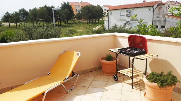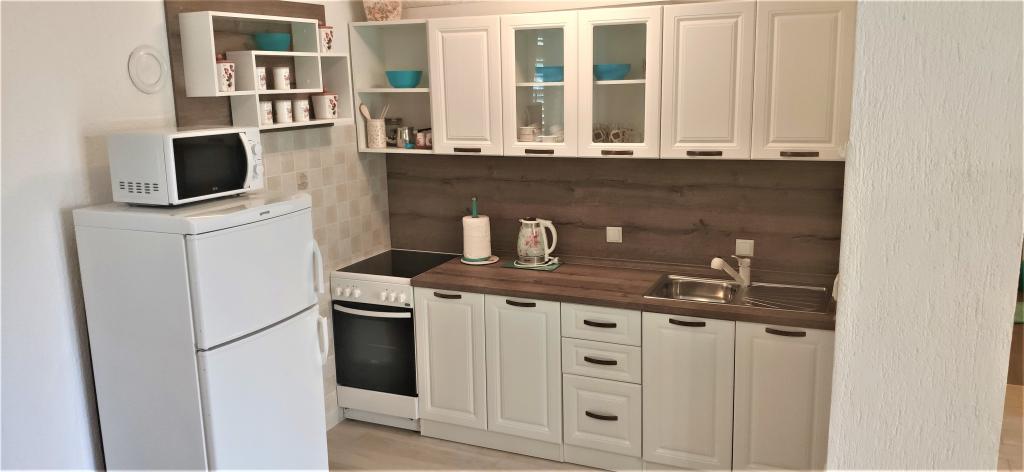 Les appartements sont situés dans un quartier calme de Vodice, entouré de diverses plantes, avec une cour clôturée et un parking. Les terrasses du premier étage sont partiellement couvertes et partiellement ouvertes pour les bains de soleil, au rez-de-chaussée elles sont entièrement couvertes. Les appartements au premier étage ont leur propre grill, et l'appartement au rez-de-chaussée dispose d'un barbecue dans la cour. À la plage 10 min à pied, 15 min au centre. Tous les appartements sont équipés de façon moderne et se composent d'un salon spacieux, d'une salle à manger et d'une cuisine, de deux chambres, d'une salle de bains et d'un couloir, et d'une grande terrasse. Chaque appartement dispose d'un lave-linge, d'un fer et d'une planche à repasser, d'un sèche-cheveux et d'une connexion Wi-Fi gratuite. La cuisine est entièrement équipée avec tout.