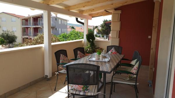 Nous avons séjourné dans cet appartement pendant 10 jours. Très belle propriétaire, Ana, elle habite en bas. L'appartement est équipé de tout ce dont vous avez besoin, il est propre et a l'air bien. Nous n'avons pas pu penser à des points négatifs, tout est là. Il se trouve à environ 15 minutes à pied du centre de Vodice et de la plage. Si vous emportez des vélos avec vous, vous pouvez faire du vélo jusqu'à la plage et vous y êtes en 3 minutes. Nous recommandons vraiment cet appartement. L'appartement du rez-de-chaussée est également recommandé, notre famille y était.