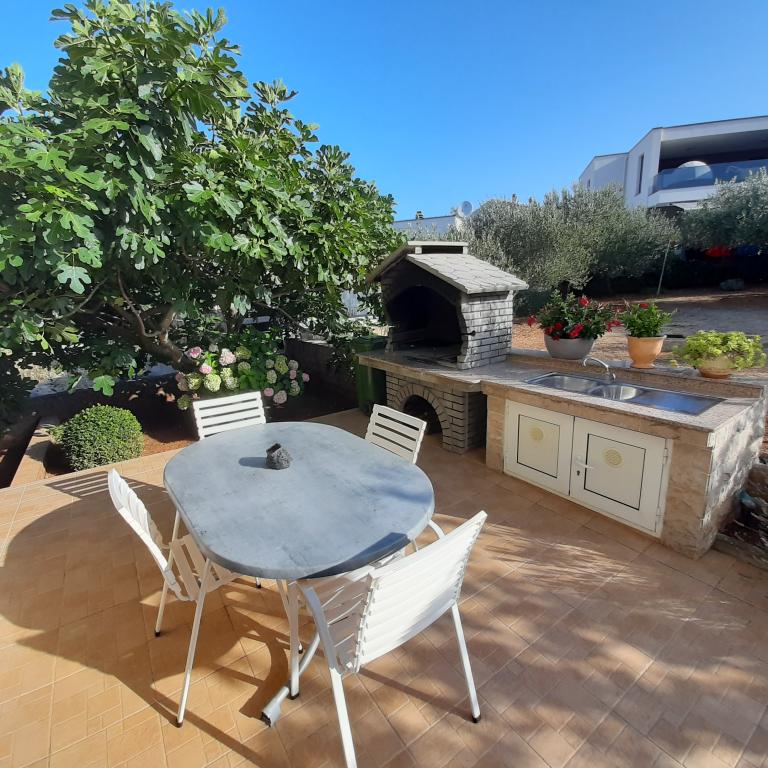 À l'écart des bâtiments voisins, au cœur d'une grande cour, des appartements très bien entretenus et équipés se trouvent dans un quartier paisible de Vodice, où le bruissement des pins et le chant des grillons sont les seuls bruits qui vous troubleront. Le prix comprend : la climatisation, le Wi-Fi, un lave-linge, la taxe de séjour, la télévision par satellite, l'accès au barbecue et à une grande terrasse, ainsi qu'un grand parking dans la cour clôturée. Chaque appartement dispose d'une terrasse avec table et chaises, d'une chambre séparée, et l'appartement A4 possède deux chambres séparées. Les cuisines des deux appartements sont identiques et entièrement équipées. Les plages de la ville, joliment aménagées, sont adaptées aux enfants et aux personnes ne sachant pas nager. Le centre-ville est accessible en 15 minutes à pied. Les appartements sont situés à proximité des hôtels Imperial et Olimpya. N'oubliez pas d'apporter avec vous l'envie de vivre la magie de l'été !