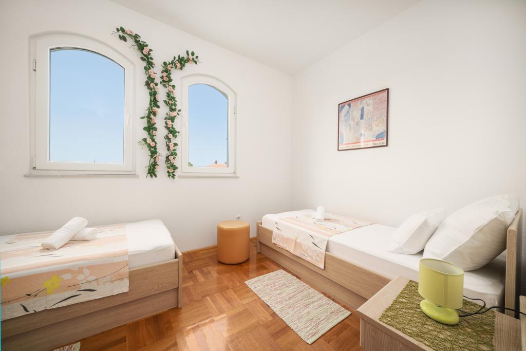 Taxe de sejour est inclus dans le prix.Vodice est une ville aux longues promenades, aux plages bien entretenues et à l'offre gastronomique et de loisirs riche, dotée de terrains de sport et de pistes cyclables en bon état, ainsi que de nombreux restaurants et cafés. On y trouve également un port de plaisance ACI et la discothèque populaire Hacienda. Les habitants, accueillants, seront toujours ravis de vous aider. À proximité se trouve la vieille ville de Šibenik (classée au patrimoine mondial de l'UNESCO) et plusieurs parcs nationaux (Krka, Kornati, etc.). Le plus célèbre parc national, celui des lacs de Plitvice, est à seulement 1 h 30 de route.