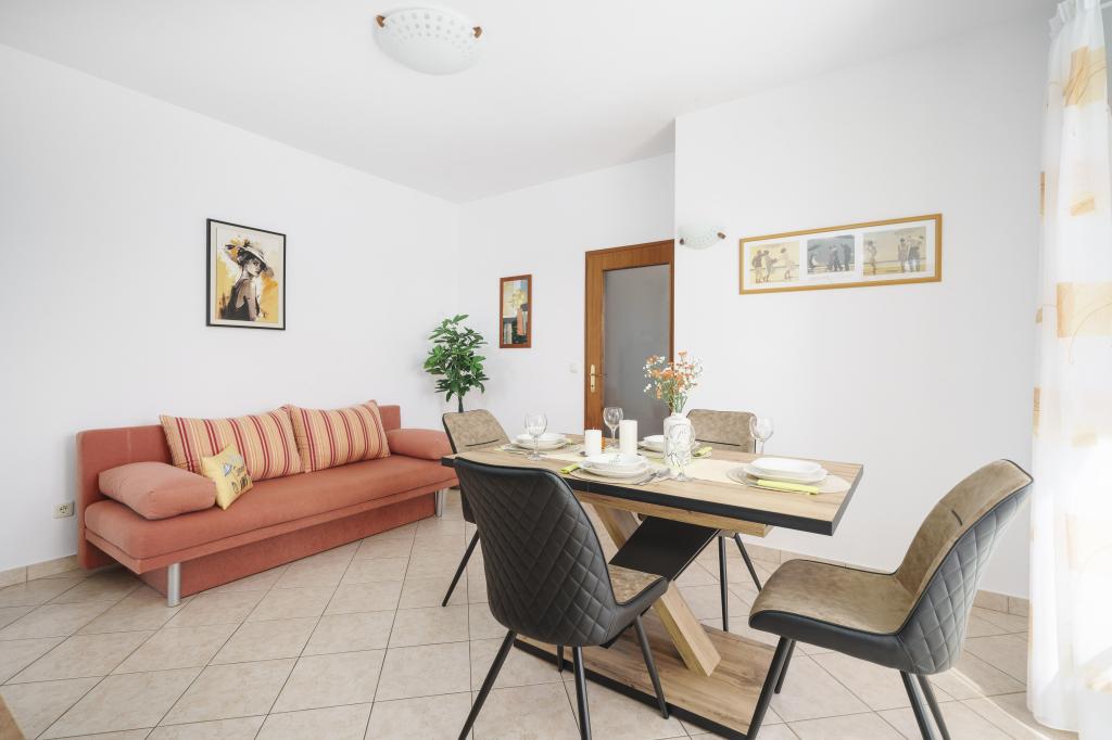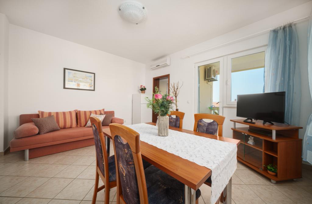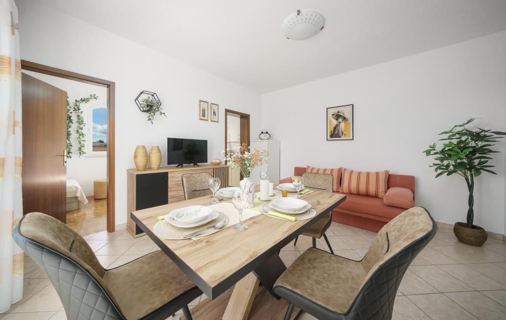 Ma femme et moi avons l'habitude de changer chaque année emplacement dopusta.Ko nous étions là la première fois que nous étions vraiment. Et lorsque nous avons examiné l'année prochaine, quelque part en vacances, je fais toujours une comparaison avec le apartmajem.Postal Je suis exigeant et presque chaque moi ce appartement motilo.Ta nous aimé parce que tout spedenano en nulo.Lepo équipé, climatisé avec un balcon et tout est comme novo.Red et la propreté à un niveau élevé. Avant de l'appartement est un grand parking qui permet à l'arrivée et de départ sans bouger vozil.Na est également disponible Fi. Et il est arrivé cette année que nous étions ici pour la cinquième fois. Les propriétaires sont parfois amicales et beaucoup nous sommes ensemble buvaient du brandy et kavo.Plaža est situé dans une forêt de pins, ainsi que sur le soleil juste nous deux plus vert senco.Dostop l'eau est très approprié pour les enfants que la profondeur lentement povečuje.Možno vélo npr.ko parce que nous étions à Makarska, cela n'a pas été possible. En bref, ces appartements je le recommande à tout le monde et nous sommes convaincus que personne ne serait déçu.