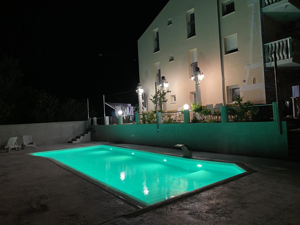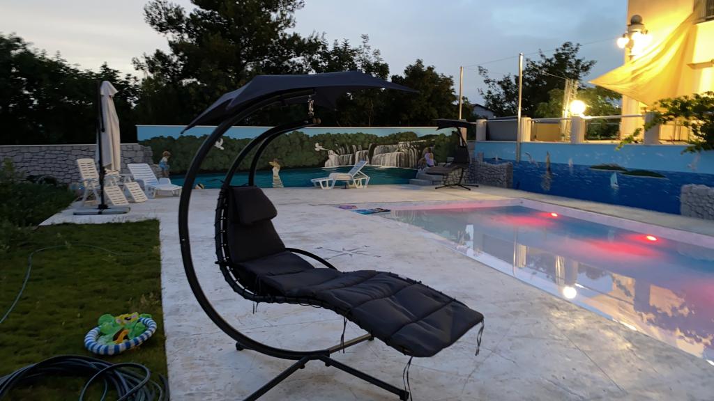 Agrandissement de l'espace de loisirs à 1 260 m² pour diverses activités sportives. Outre ces nouveaux équipements, les appartements IVAN V bénéficient également du label RELAX. La nouvelle piscine d'eau salée chauffée et le jacuzzi sont ouverts à tous les clients. Vaccinés contre la Covid-19. Nous envoyons les confirmations de réservation. Tous les anciens clients bénéficient d'une réduction de 10 % sur le paiement standard pour cette période, ainsi que les clients de Zenica ; cette réduction n'est pas cumulable avec d'autres réductions. Chaque appartement donne accès à la piscine et au jacuzzi dans la cour de l'établissement. La capacité de l'établissement est de 18 lits. Possibilité d'organiser le transport vers l'aéroport de Split ou de Zadar (50 km) moyennant un supplément.