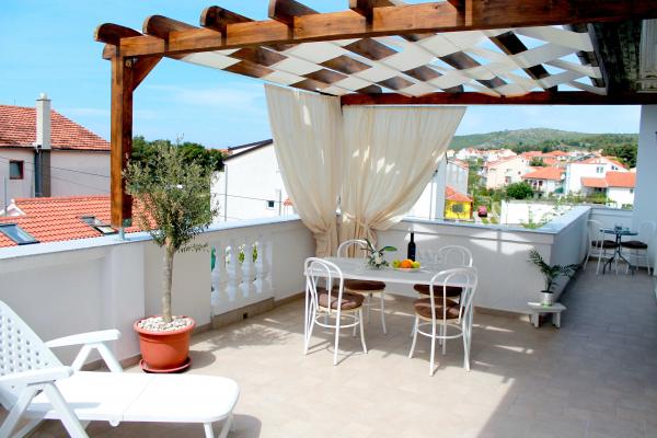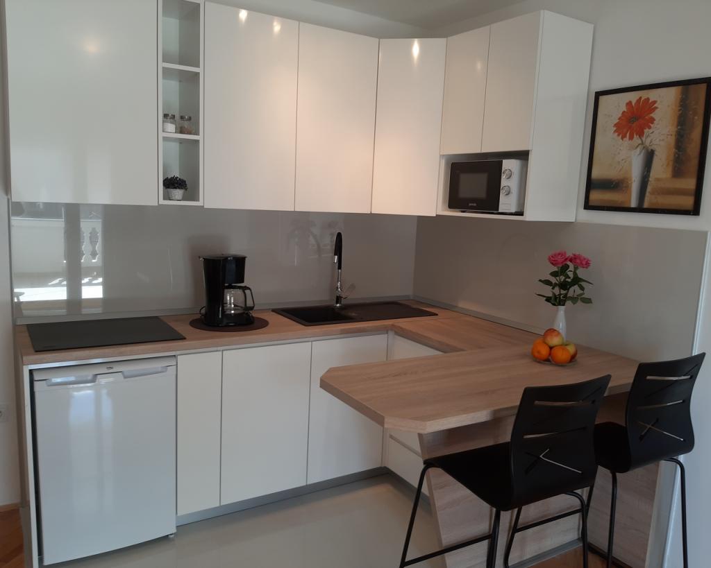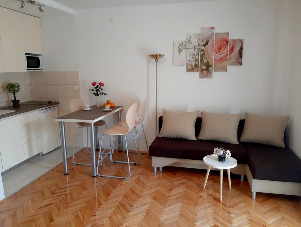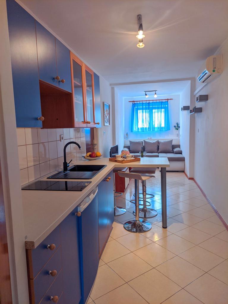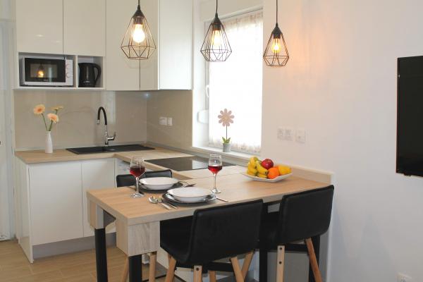 Nous sommes situés près de l\hôtel Punta. Distance de nos appartements, centre-ville, et bleu plage est à environ 100 mètres. Chaque appartement dispose d\un balcon ou d\une terrasse entourée d\espace vert. Toutes les infrastructures est équipé de l\air conditionné, télévision par satellite, connexion Wi-Fi et il est à la libre utilisation d\un barbecue. Le parking est en face de la maison avec une cour entourée d\une clôture, et il est également gratuit. Passez vos vacances dans nos appartements. Bienvenue !!!