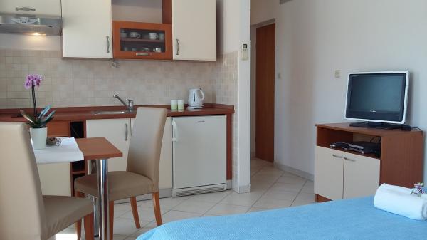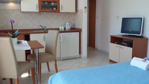 Prenant la parole à la dernière minute trouver gratuitement 6 nuits avec la famille Kraljevic mais nous avons eu le sentiment que ce sera très bon! Les loyers sont abordables, disponibles, le studio était grande, propre et net, même mieux que les photos, juste pour deux, avec tout ce dont vous avez besoin et plus encore. L'emplacement est idéal pour les personnes sans voiture, et surtout tous les coûts, les vacances de valeur provenant principalement! Vodice est une belle et très proche des autres lieux d'intérêt et d'excellentes plages. Et bien sûr, un excellent restaurant à côté des appartements. Recommandé!