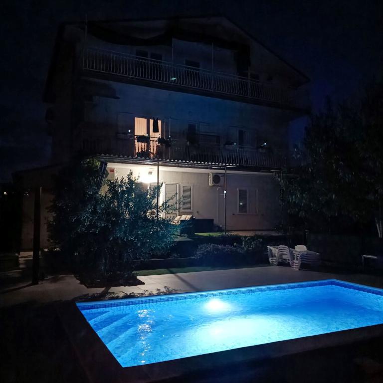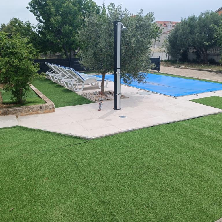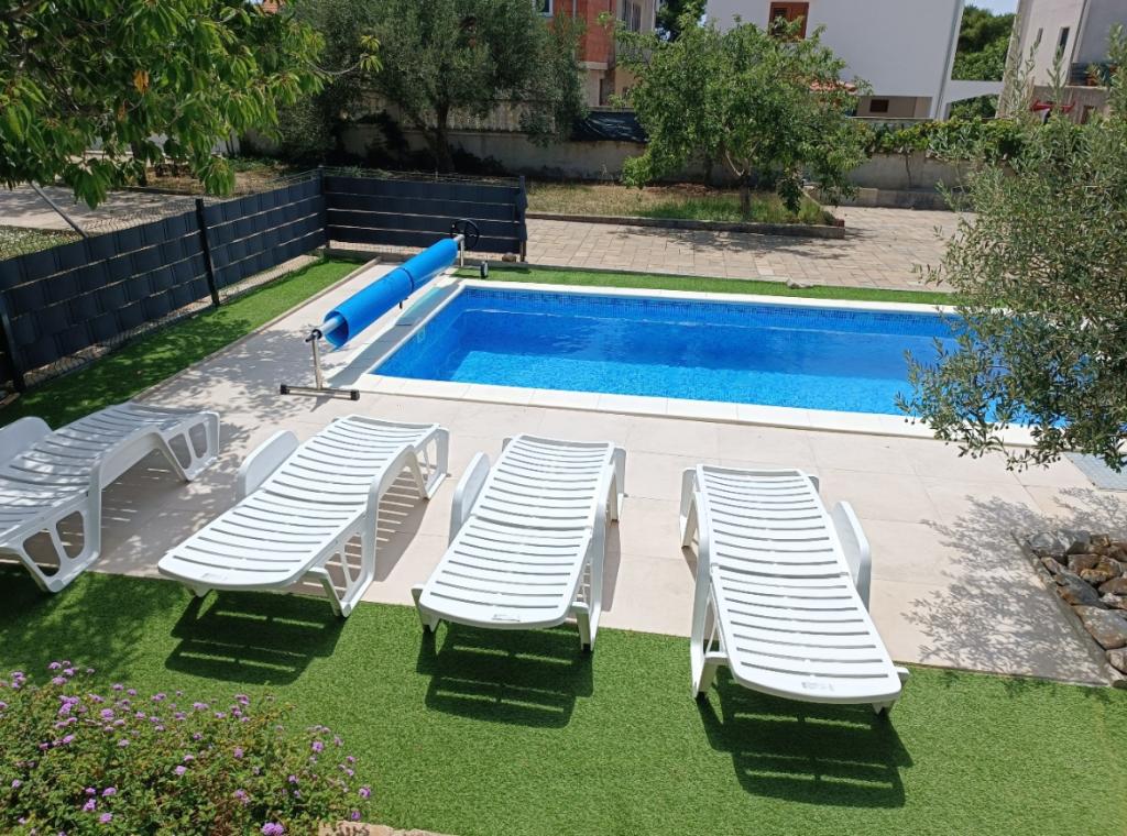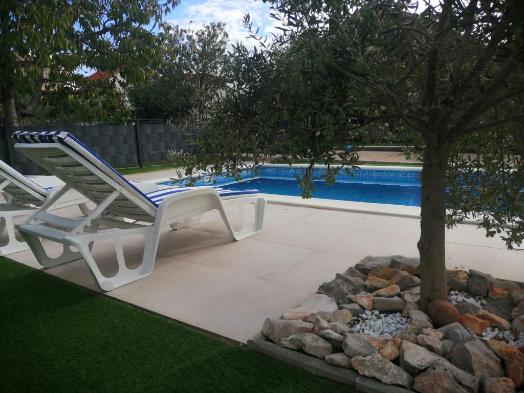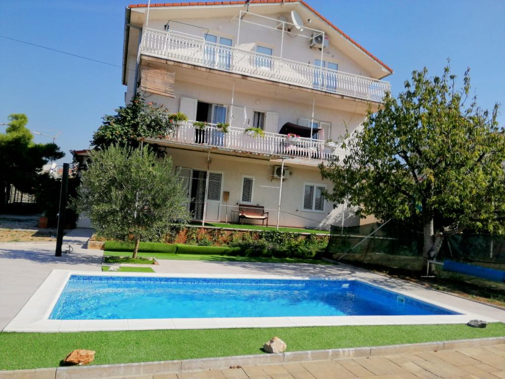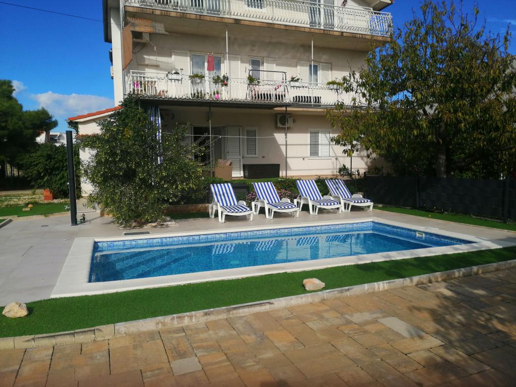 Grands appartements récemment rénovés avec piscine extérieure, rien que pour vous ! Comme une maison de vacances ! Cuisine entièrement rénovée avec appareils électroménagers neufs (réfrigérateur, congélateur, four, plaques de cuisson, micro-ondes, bouilloire, lave-vaisselle, lave-linge, hotte aspirante). Vaisselle et ustensiles de cuisine. Séjour avec canapé d'angle convertible en lit double. Télévision par satellite. Chambres avec lits doubles spacieux. Linge de lit fourni. Toutes les chambres sont climatisées. Deux salles de bains récemment rénovées avec toilettes et douches à l'italienne. Lave-linge, matériel de repassage, sèche-cheveux. Aspirateur et produits d'entretien, papier toilette, savon, serviettes. Terrasse de 30 m² avec mobilier de jardin, barbecue et chaises longues au bord de la piscine. Grand jardin de 1 300 m² planté d'arbres méditerranéens. Parking gratuit dans la cour ! Les aéroports de Zadar et de Split sont à environ 60 km. À proximité des parcs nationaux de Krka et des Kornati.