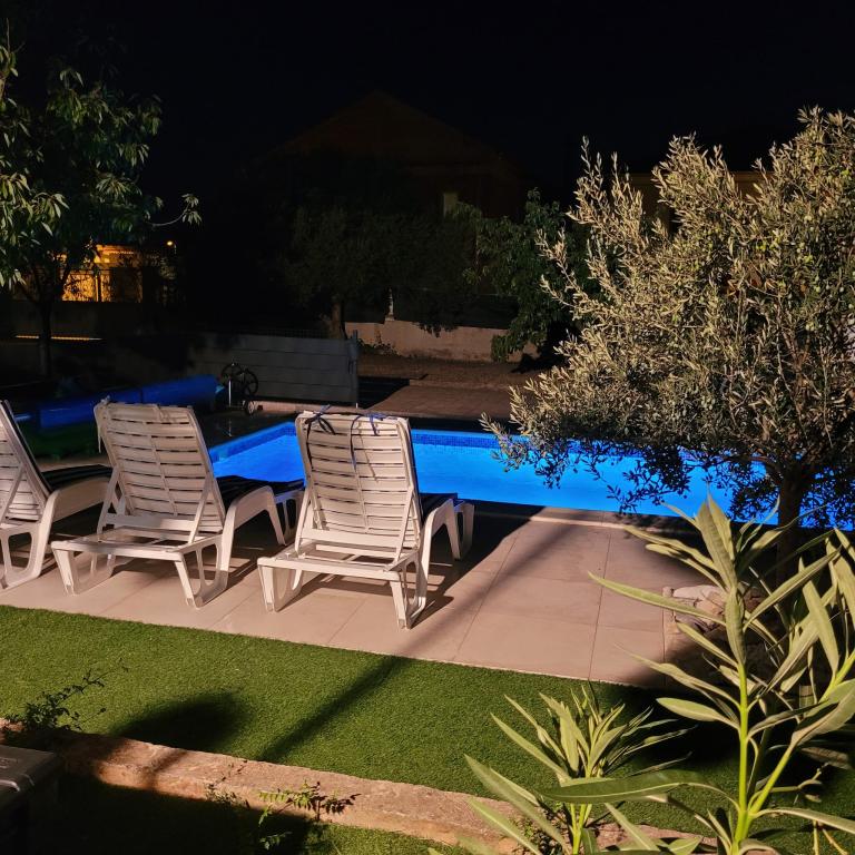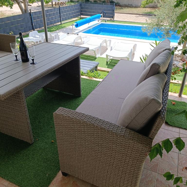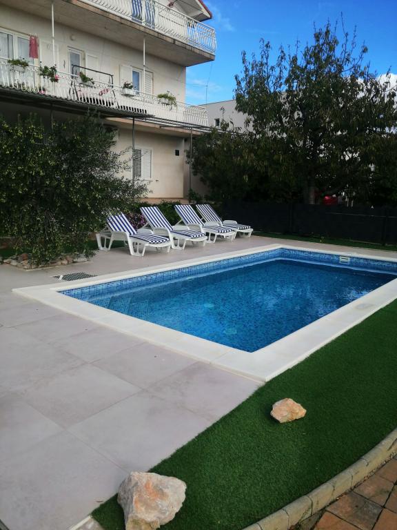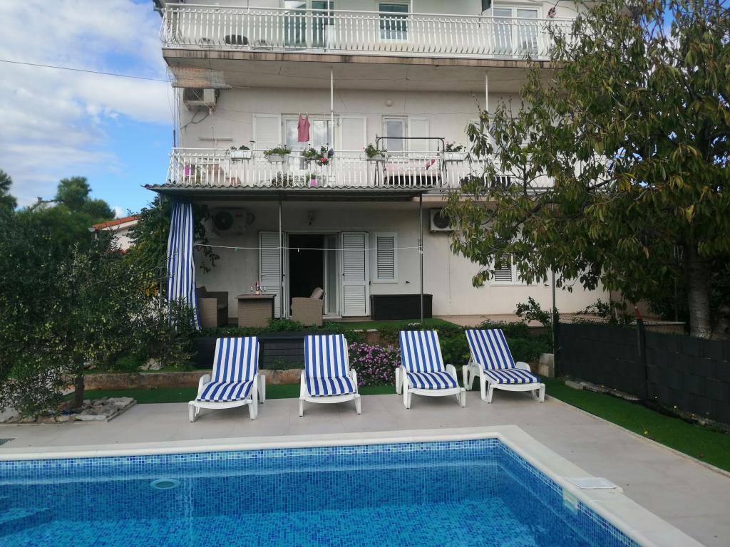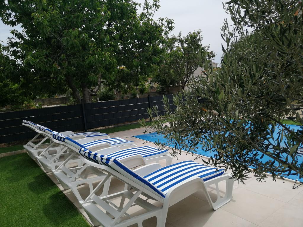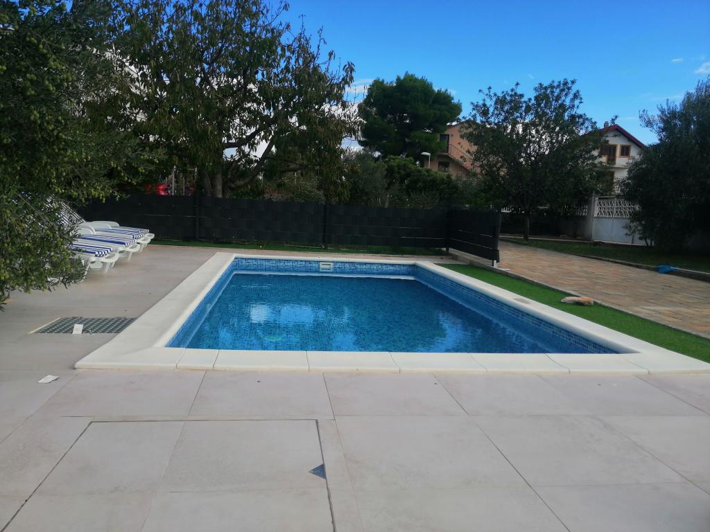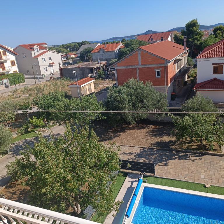 Grands appartements récemment rénovés avec piscine extérieure, rien que pour vous ! Comme une maison de vacances ! Cuisine entièrement rénovée avec appareils électroménagers neufs (réfrigérateur, congélateur, four, plaques de cuisson, micro-ondes, bouilloire, lave-vaisselle, lave-linge, hotte aspirante). Vaisselle et ustensiles de cuisine. Séjour avec canapé d'angle convertible en lit double. Télévision par satellite. Chambres avec lits doubles spacieux. Linge de lit fourni. Toutes les chambres sont climatisées. Deux salles de bains récemment rénovées avec toilettes et douches à l'italienne. Lave-linge, matériel de repassage, sèche-cheveux. Aspirateur et produits d'entretien, papier toilette, savon, serviettes. Terrasse de 30 m² avec mobilier de jardin, barbecue et chaises longues au bord de la piscine. Grand jardin de 1 300 m² planté d'arbres méditerranéens. Parking gratuit dans la cour ! Les aéroports de Zadar et de Split sont à environ 60 km. À proximité des parcs nationaux de Krka et des Kornati.