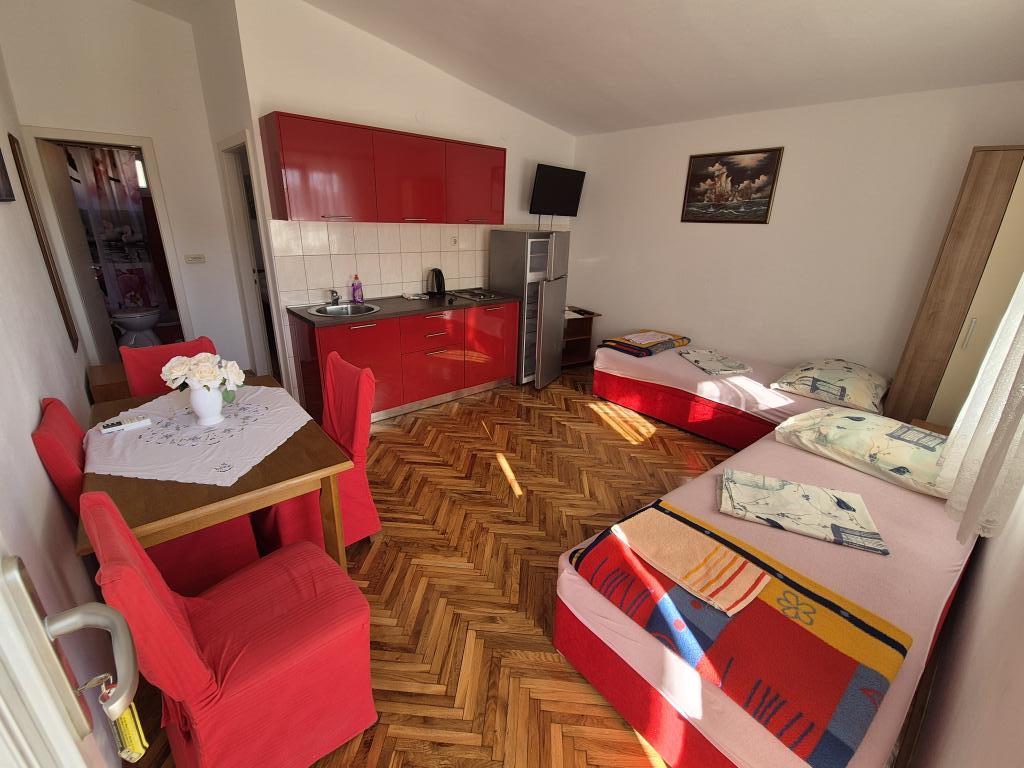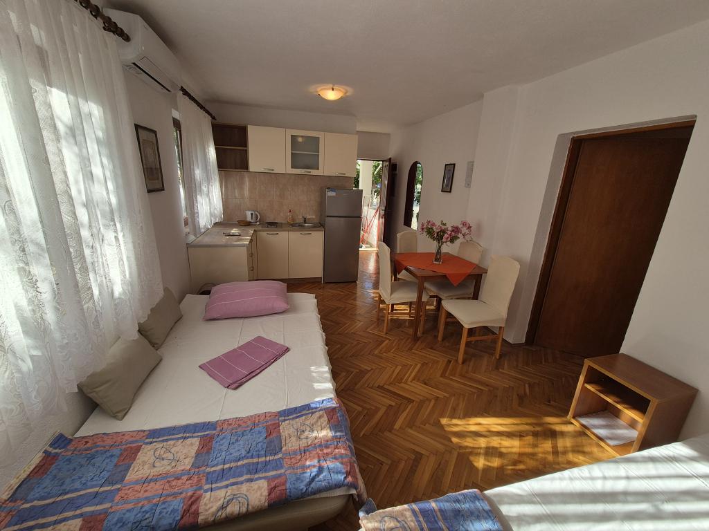 Une installation merveilleuse, nous avons utilisé l'application 2 + 2 + 2, nous avons été ravis de l'hébergement propre et bien rangé, de l'espace, de la paix et de la tranquillité. Appartements en abondance de verdure et d'ombre dans la chaleur estivale. Près de la plage. Les propriétaires sont extrêmement arrangeants, sympathiques et disponibles pour toutes les demandes. Nous avons été particulièrement impressionnés par l'aide du propriétaire avec le gril, la préparation du feu et tout ce dont nous avions besoin pour les grillades. Vin maison pour un accueil mais aussi pour un séjour agréable. Discret, mais disponible ! Félicitations, nous reviendrons l'année prochaine !