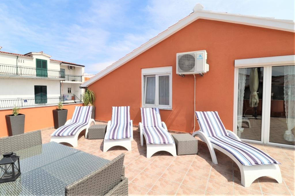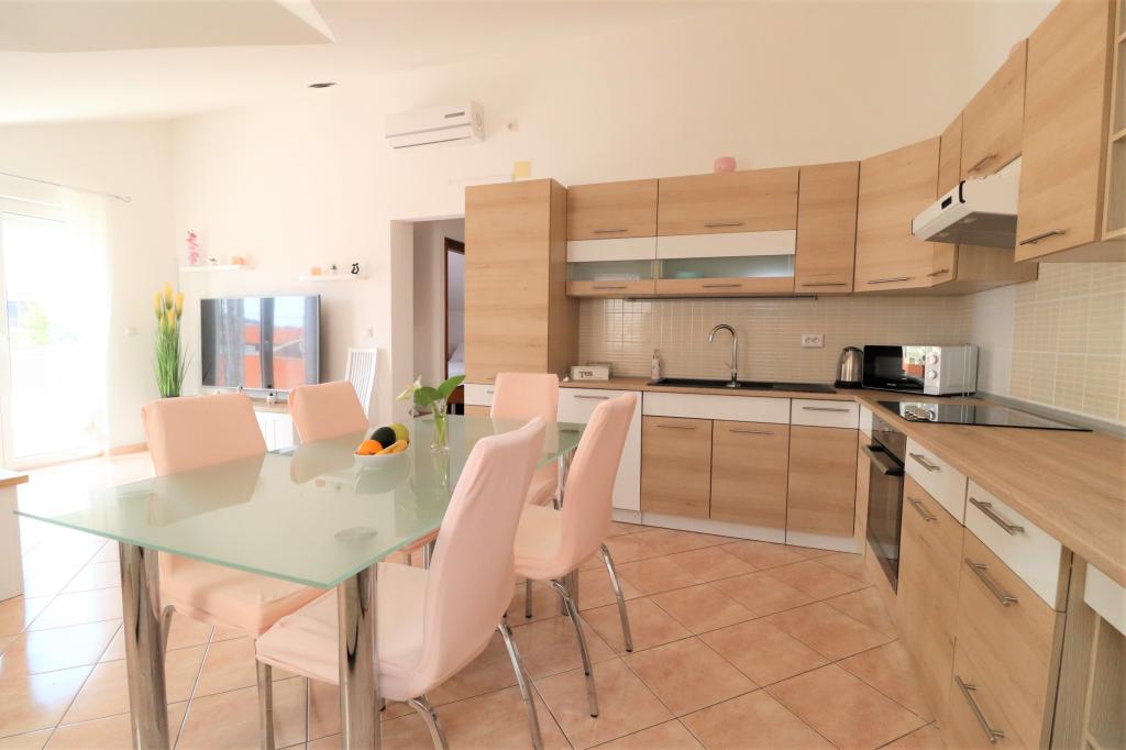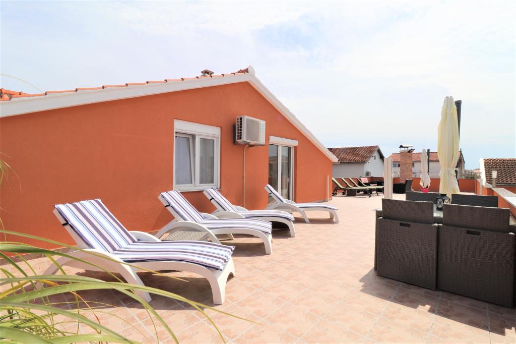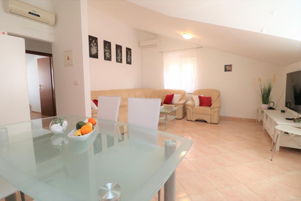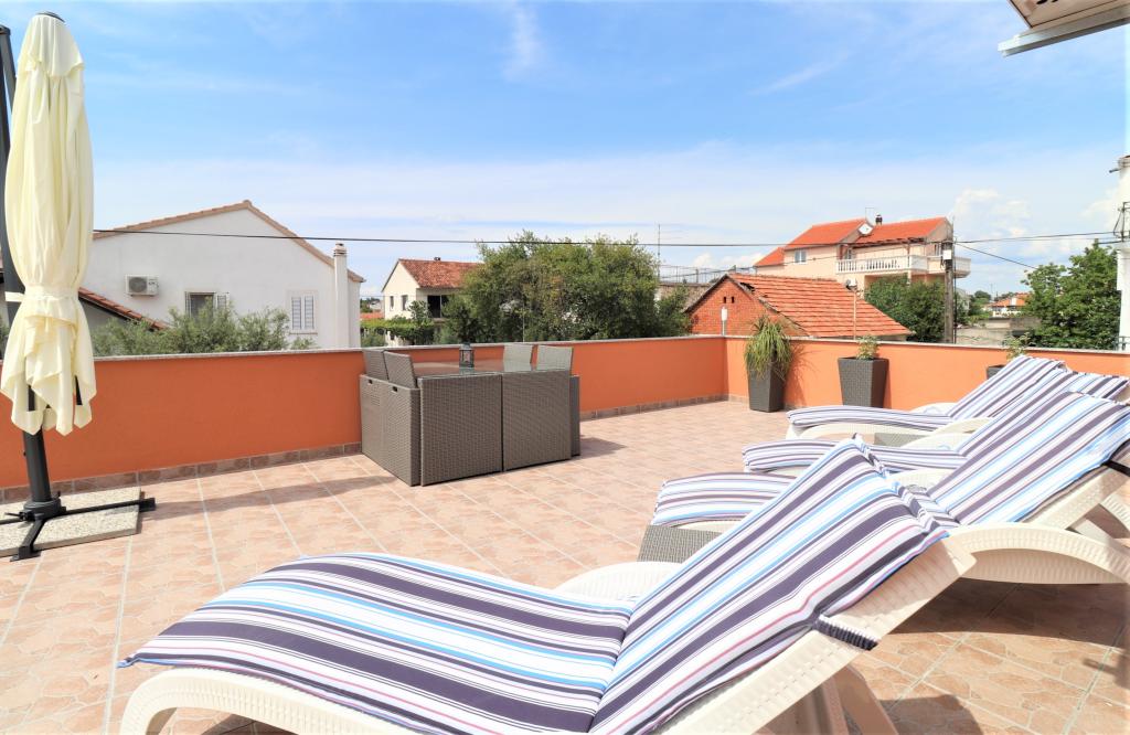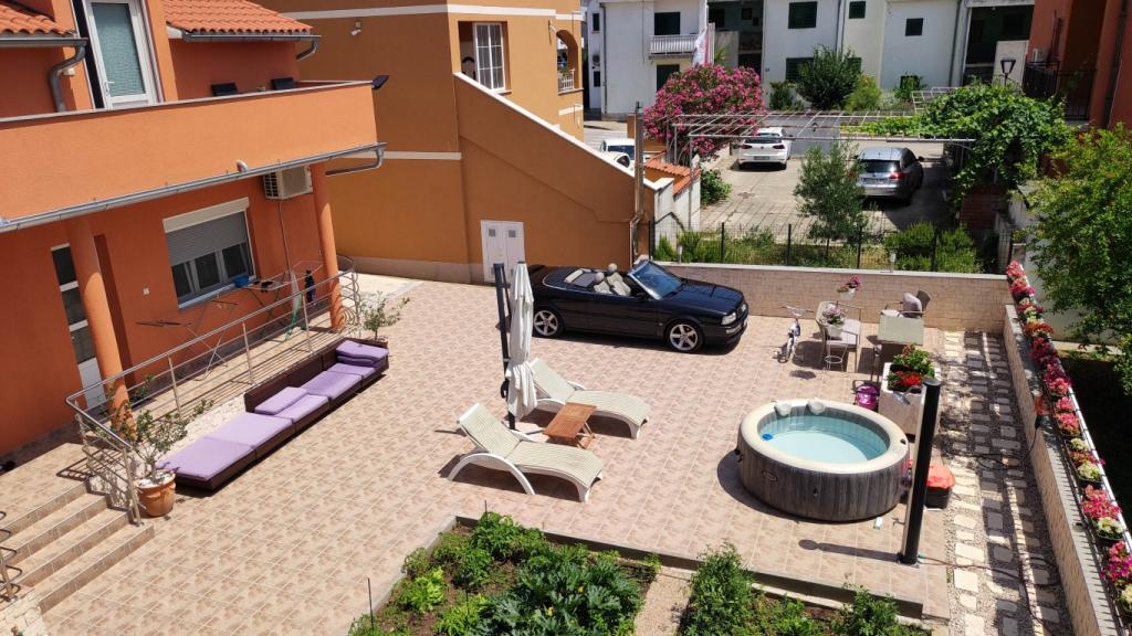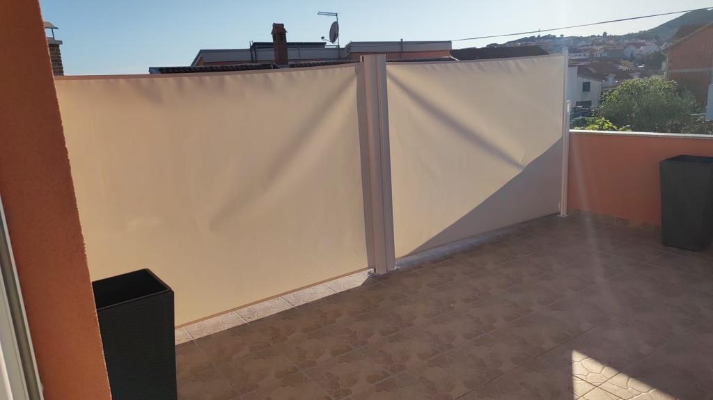 Appartements entièrement équipés dans un quartier calme de Vodice avec une grande terrasse et une cour. Les appartements sont situés au dernier étage de la maison familiale. La terrasse peut être séparée par un auvent latéral si nécessaire. Il y a un jacuzzi et un barbecue dans la cour. Les animaux domestiques sont les bienvenus. Une place de parking pour deux voitures est prévue. Les plages sont à environ 15 minutes à pied. La taxe de séjour est incluse dans le prix. Possibilité de transport depuis les aéroports de Zadar et Split.