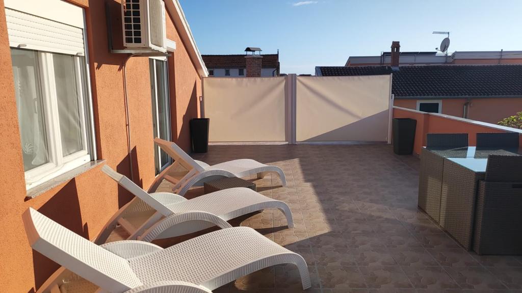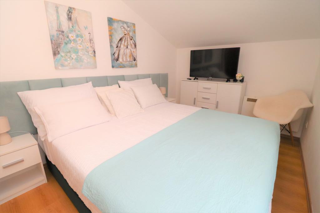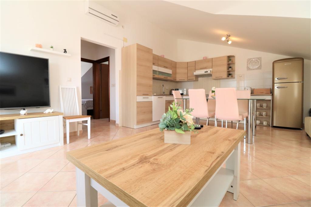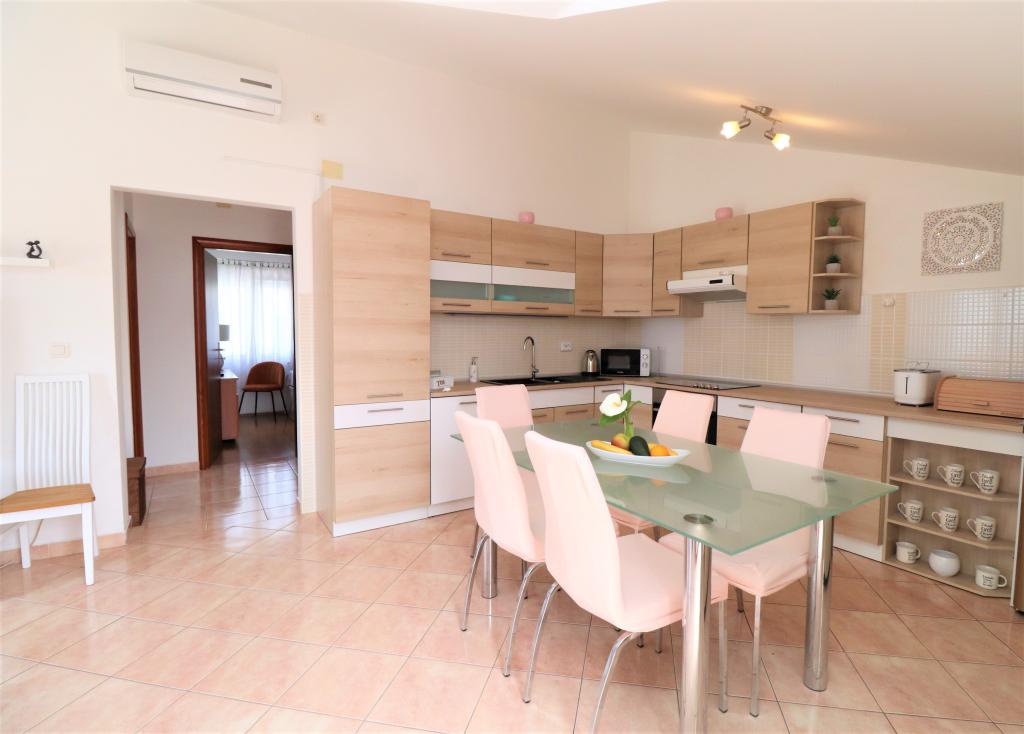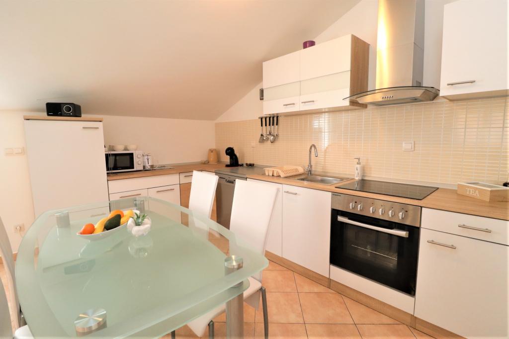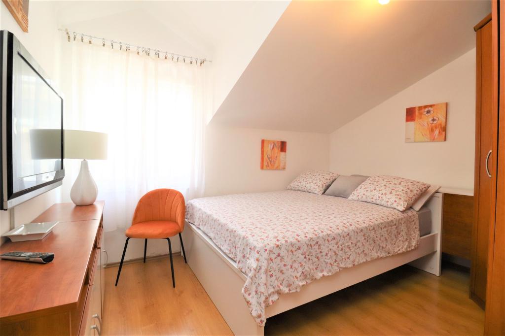Appartements entièrement équipés dans un quartier calme de Vodice avec une grande terrasse et une cour. Les appartements sont situés au dernier étage de la maison familiale. La terrasse peut être séparée par un auvent latéral si nécessaire. Il y a un jacuzzi et un barbecue dans la cour. Les animaux domestiques sont les bienvenus. Une place de parking pour deux voitures est prévue. Les plages sont à environ 15 minutes à pied. La taxe de séjour est incluse dans le prix. Possibilité de transport depuis les aéroports de Zadar et Split.