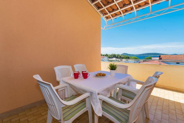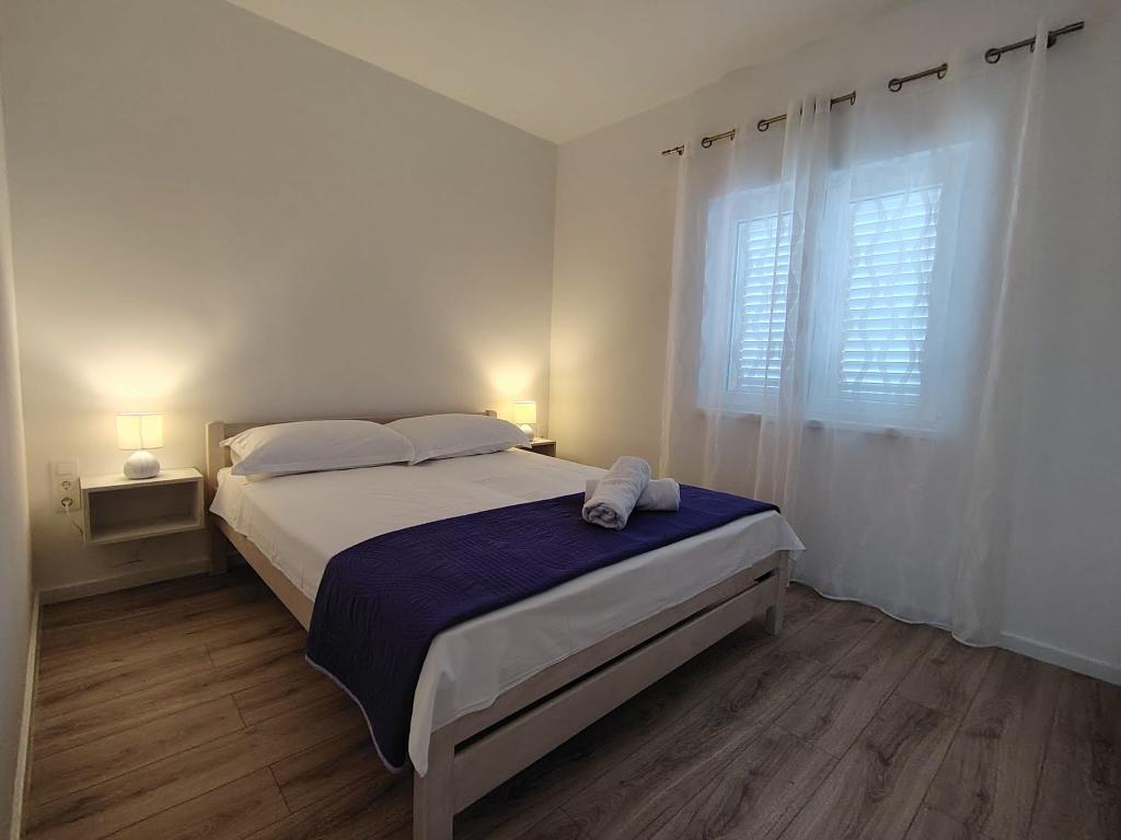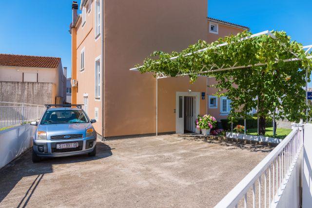 Les appartements Marko sont situés rue Blata, dans un quartier calme de Vodice, près de l'hôtel Punta. La plage principale, Plava Plaža, se trouve à 100 m et le centre-ville à 300 m. Nous proposons trois appartements : l'appartement 4+2, l'appartement 4+1 et l'appartement 2. L'appartement 4+2 comprend deux chambres avec un lit double, une salle de bains, un salon avec canapé-lit, une cuisine et une terrasse. L'appartement 4+1 comprend également deux chambres avec un lit double, un salon avec canapé-lit, une cuisine, une salle de bains et une terrasse. L'appartement 2 dispose d'une chambre avec un lit double, d'une salle de bains, d'une cuisine avec coin repas, d'un salon avec canapé-lit et d'un balcon avec une table pour deux. Chaque appartement est équipé d'un lave-linge et de la climatisation. Un parking est disponible dans la cour. Un barbecue est à votre disposition. Supplément de 20 € par personne et par jour (à partir de 4 personnes). Bienvenue !