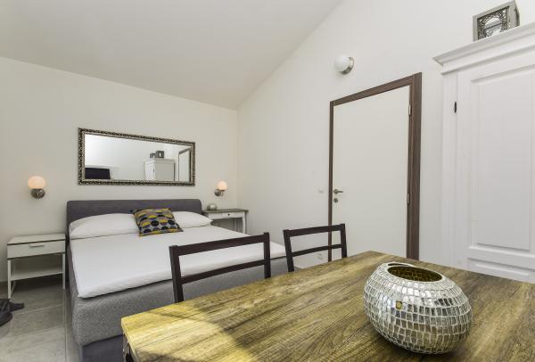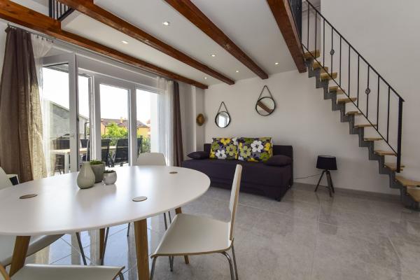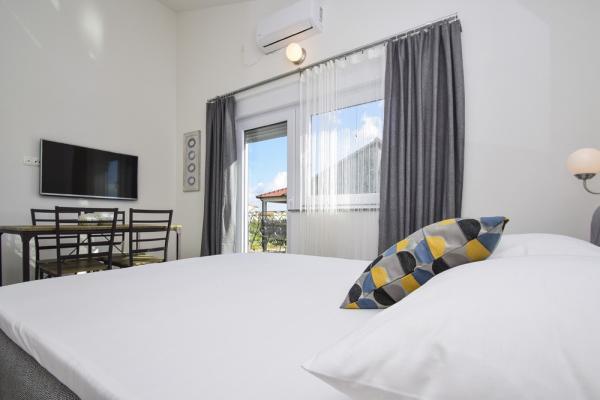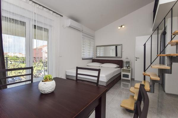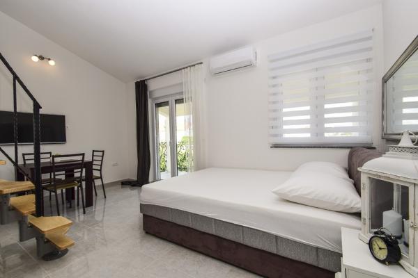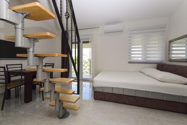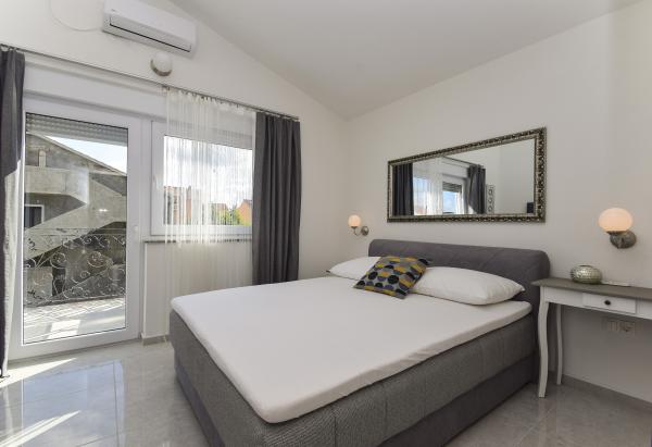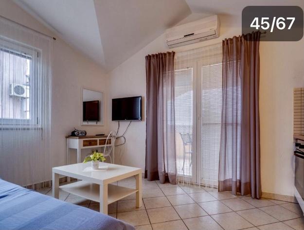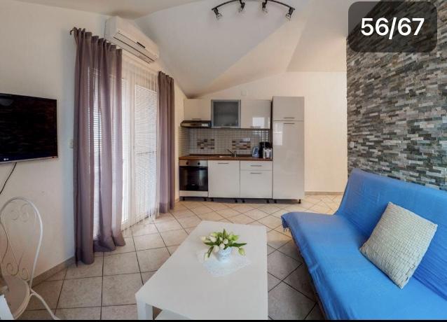 Beaux appartements climatisés, nouvellement équipés selon les normes modernes qui répondent et najzahtjenije, l'hygiène même sans faille. Les appartements sont situés dans une rue calme, avec une grande terrasse et une belle piscine. Près de la plage, dans une forêt de pins, avec beaucoup à faire pour les enfants et les adultes, ainsi que des hôtels et des magasins. Le centre-ville et l'un des plus beau port de plaisance sur la côte adriatique est une promenade facile le long de la plage, à 5 minutes.