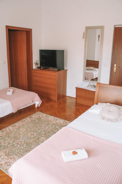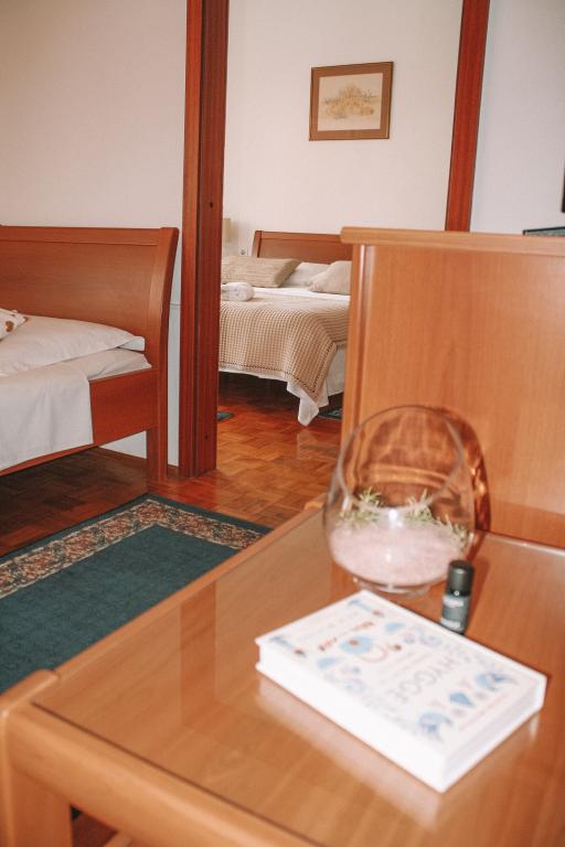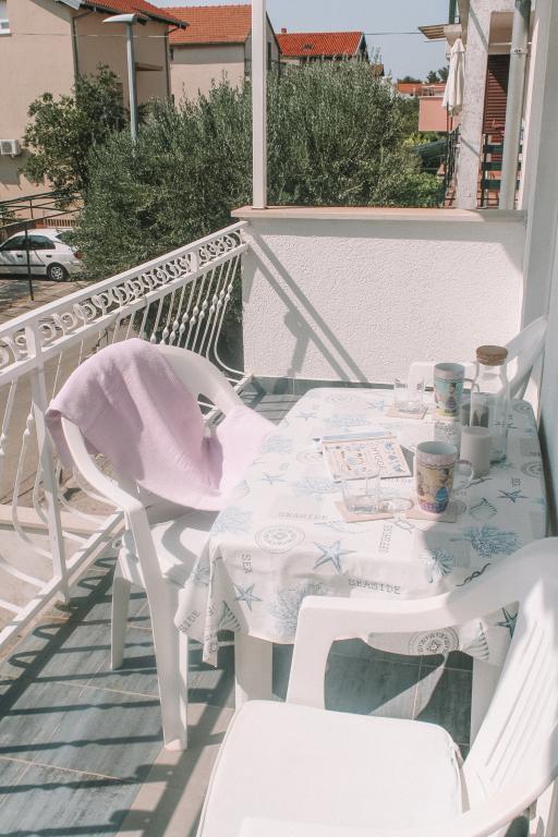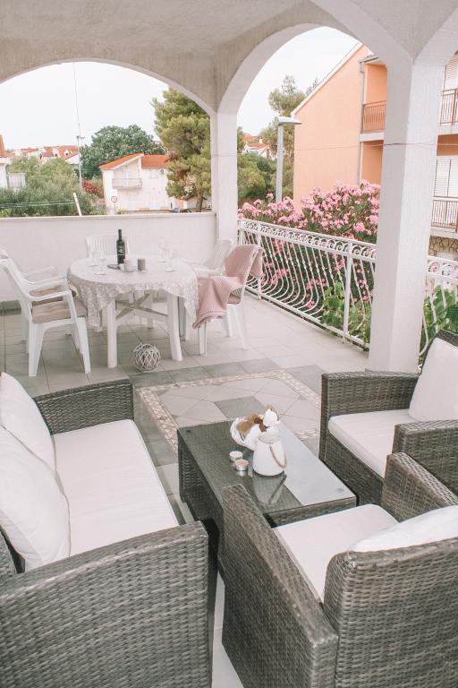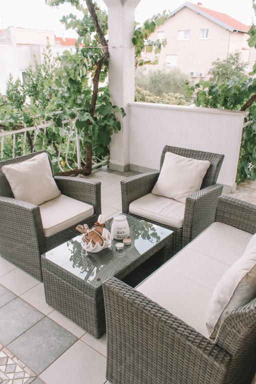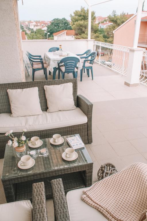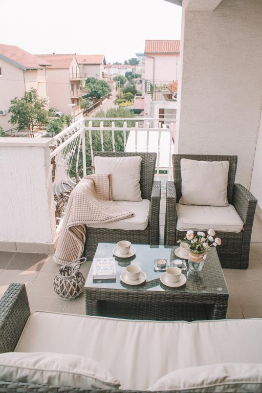 Les appartements sont situés dans un quartier calme de Vodice. Le bâtiment dispose d'une grande terrasse de 25 m2, d'un garage, de places de parking, d'un grand grill en brique. Les appartements sont spacieux, équipés (TV-SAT, climatisation, internet WIFI). Dans la cour, nous avons créé pour vous un jardin parfumé aux herbes méditerranéennes, et dans les appartements eux-mêmes, vous pourrez vous détendre avec les parfums rafraîchissants et apaisants des huiles essentielles biologiques de plantes croates. Notre mission est de faire en sorte que chacun de nos clients se sente détendu, à l'aise et heureux pendant son séjour. Un verre de bienvenue et un gâteau traditionnel attendent chaque invité !