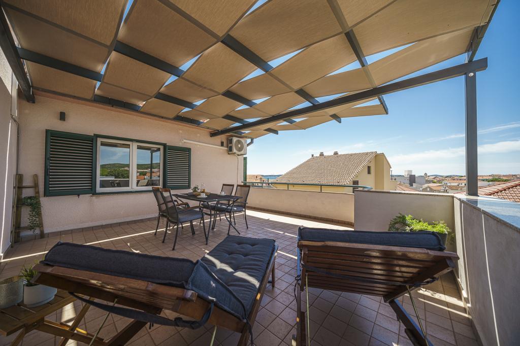 Bienvenue aux Appartements Famille Petrov ! Nous proposons un hébergement confortable dans 5 appartements modernes et équipés, parfaits pour les petits groupes ou les familles nombreuses souhaitant passer des vacances reposantes. Situés dans deux maisons familiales avec entrées indépendantes, ils se trouvent au rez-de-chaussée et au premier étage. Chaque appartement dispose d'une entrée séparée et d'une terrasse couverte privative. Notre emplacement est idéal : nous sommes situés dans un quartier calme, à l'abri du bruit et de la circulation, et pourtant à seulement quelques minutes à pied du centre de Vodice et de la plage de galets de Mala Vruje. À proximité immédiate, vous trouverez des supermarchés, des cafés, une boulangerie et une pharmacie, vous assurant ainsi un accès facile à toutes les commodités. Nous vous invitons à passer vos vacances dans un cadre paisible, à deux pas de la plage et du centre-ville !