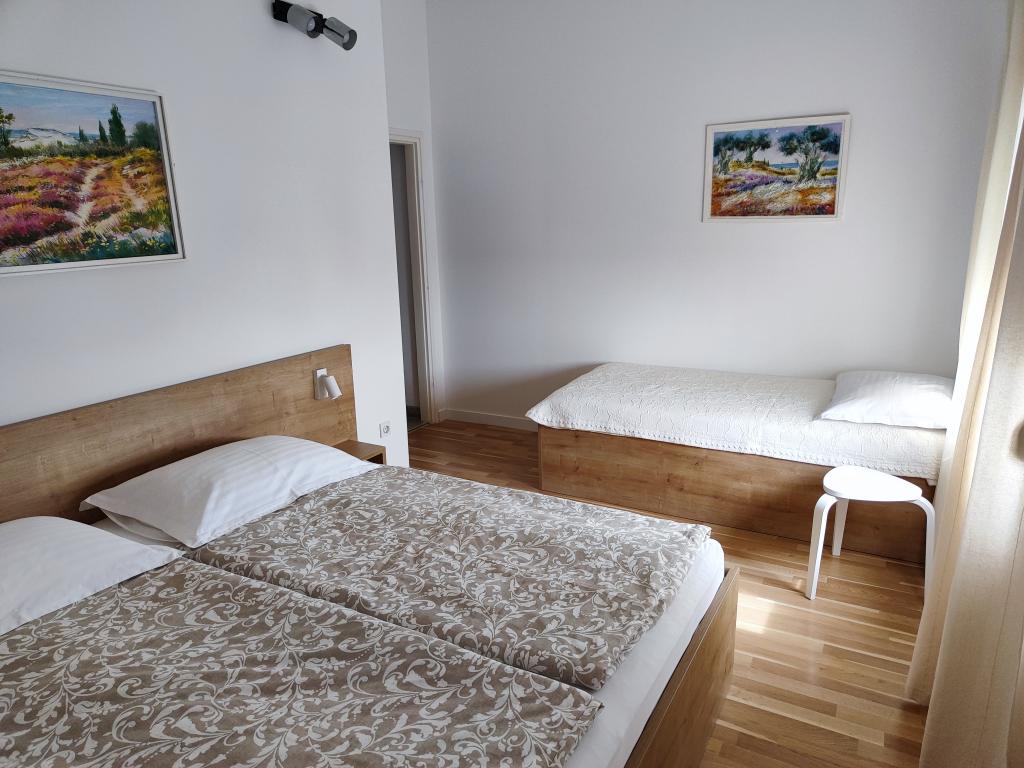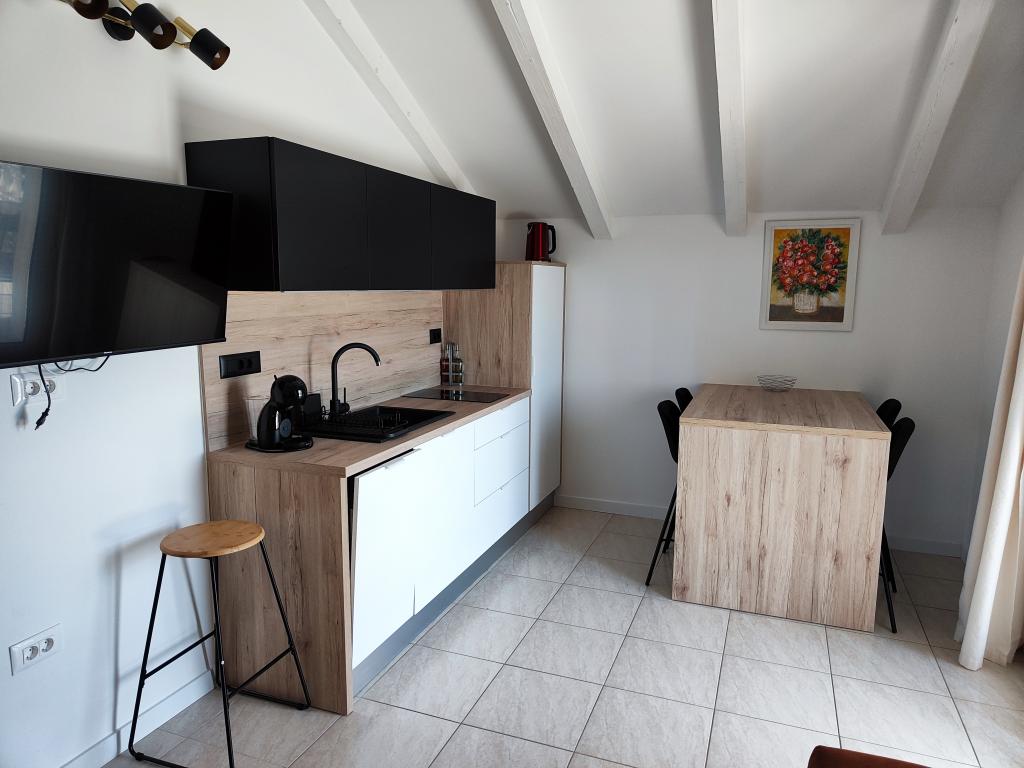 Chers invités, nous vous invitons à passer vos vacances dans le cadre paisible du jardin et des appartements joliment décorés. Loin du bruit mais très proche de la plage et du centre ville. Vous garez simplement la voiture et ne l'utilisez pas jusqu'à votre retour chez vous. Commencez la journée en buvant un café sur la terrasse de l'appartement avec une vue fantastique sur la mer, les îles et la Blue Beach. Descendez ensuite à la plage avec seulement une serviette à la main. Et le soir, quoi de mieux qu'un dîner d'été en famille ou entre amis que vous pourrez préparer dans le grill du jardin. Nous attendons votre arrivée avec impatience !