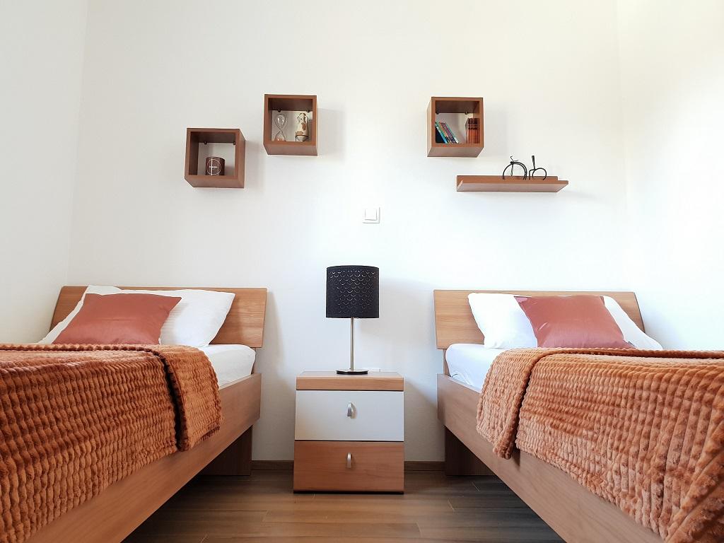 En savoir plus Unités d'hébergementHeure d'arrivée : à partir de 14h00, heure de départ : jusqu'à 10h00. (Arrivée anticipée et départ tardif possibles, selon disponibilité.) Le paiement anticipé pour la réservation est de 30 % du prix total de l'hébergement. La climatisation, Internet sans fil, le parking, les draps, les serviettes, l'utilisation de la cuisine d'été avec grill et les vélos ainsi que le nettoyage final sont inclus dans le prix de location de l'appartement. Pour des séjours plus longs ou lors de la réservation des deux appartements en même temps, nous accordons une RÉDUCTION :)