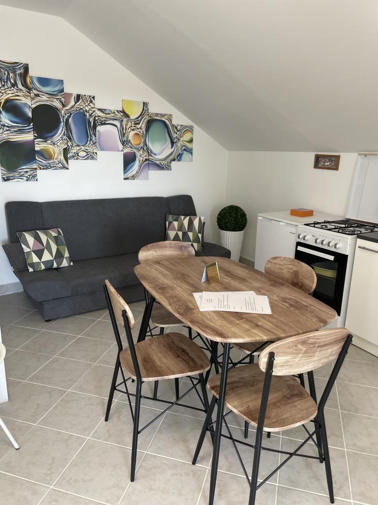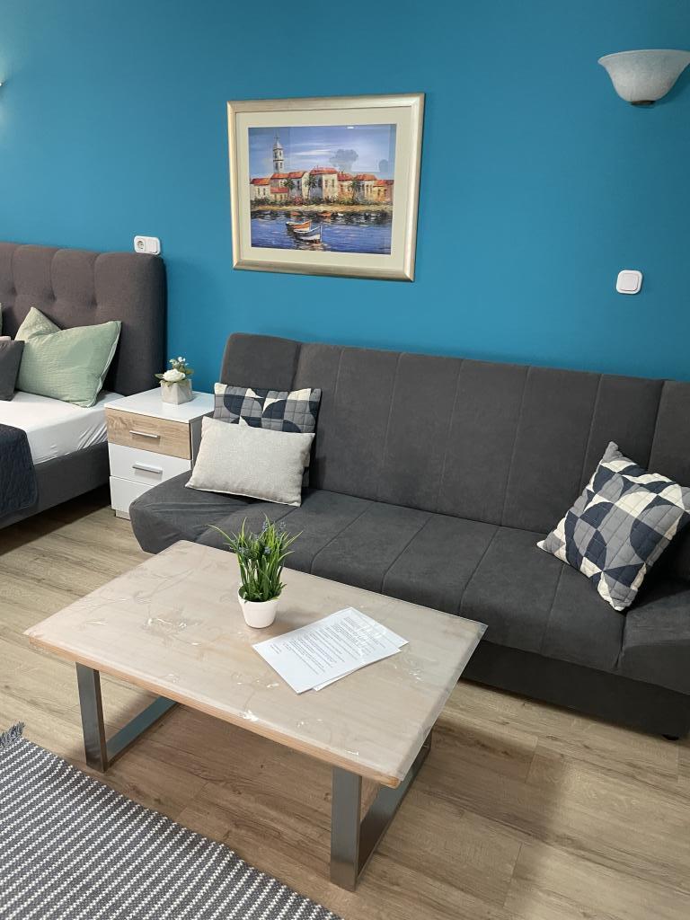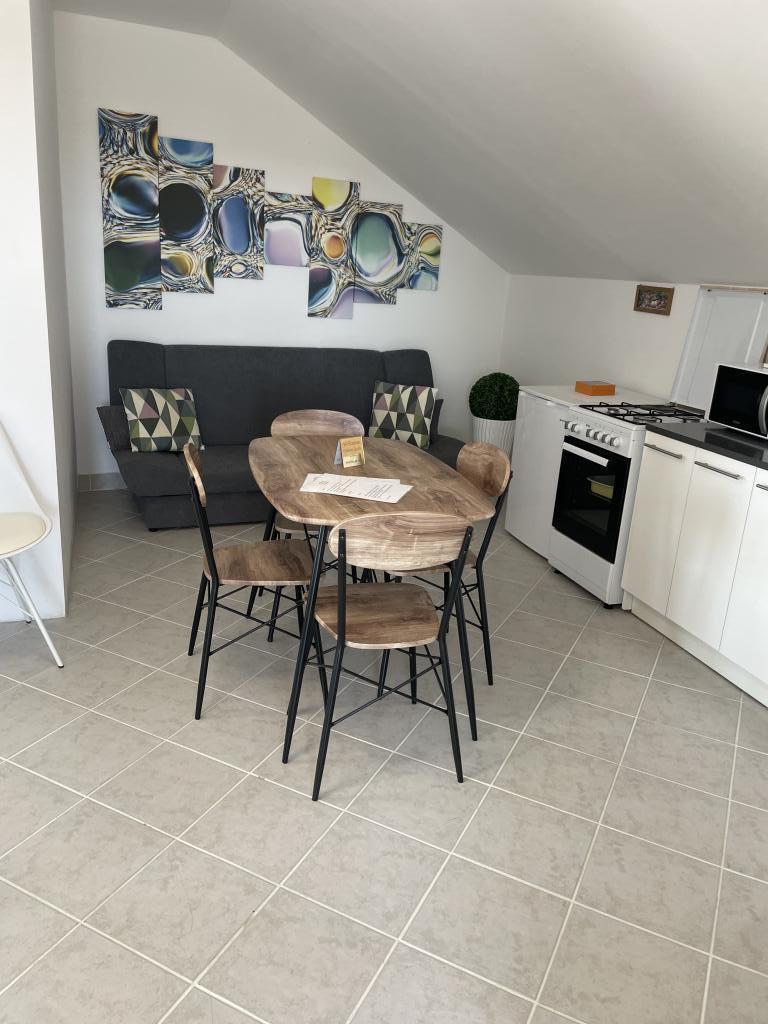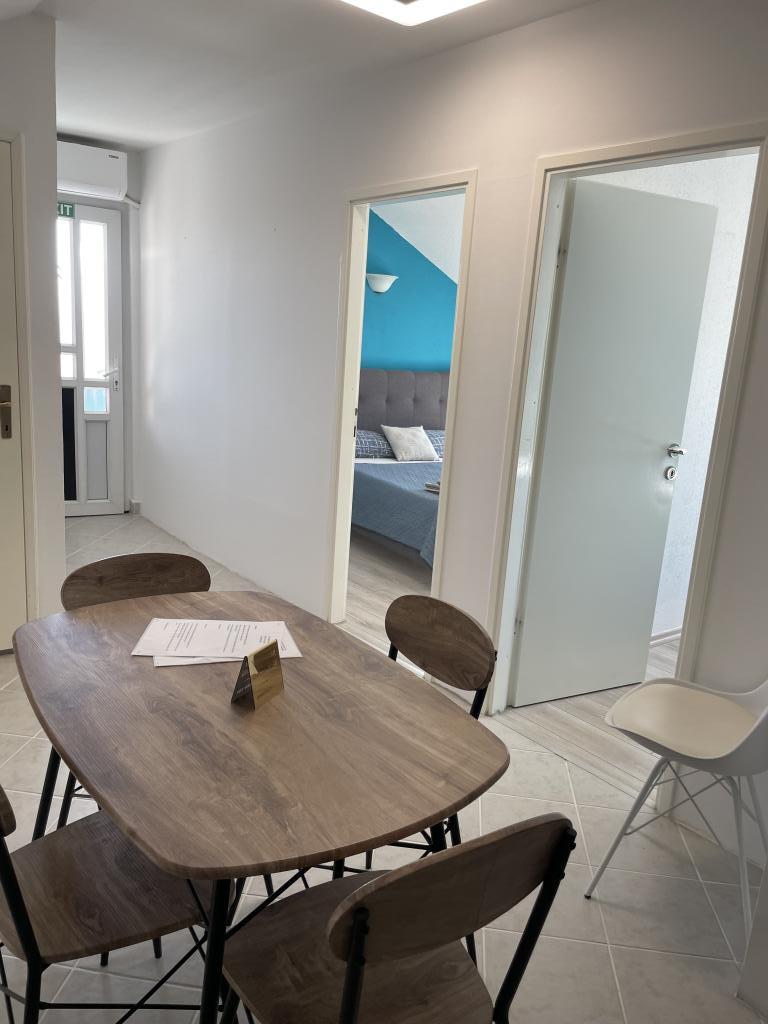 Appartements modernes et entièrement équipés au cœur de Vodice, à seulement 150 mètres de la mer. L'établissement se trouve à 1 minute à pied du centre et à 5 minutes à pied de la plage. Nous proposons un appartement avec vue mer pour 4+1 personnes, composé de deux chambres avec deux lits doubles et un lit d'appoint pour la 5e personne, ainsi qu'un balcon offrant une magnifique vue sur la mer. Nous proposons également deux appartements pour 2+1 personnes, chacun équipé d'un lit double et d'un lit d'appoint. L'un de ces appartements dispose d'un balcon. Offre spéciale pour les séjours de 6 et 9 mois : 5 nuits payées, 1 nuit offerte ! Le parking est gratuit. Bienvenue à Vodice !