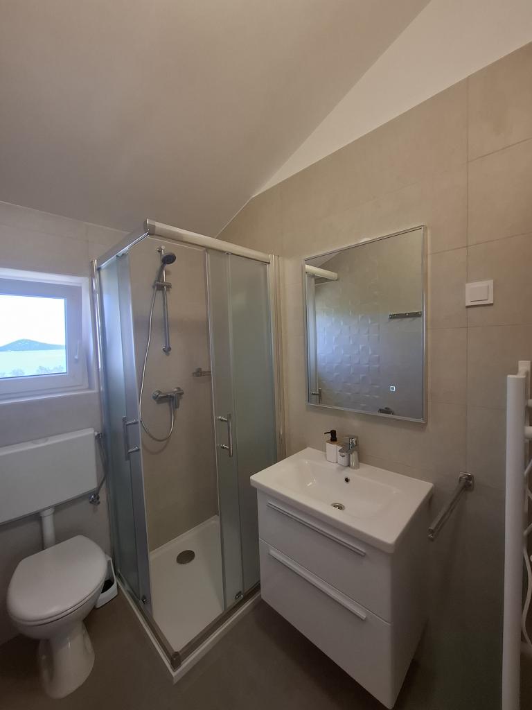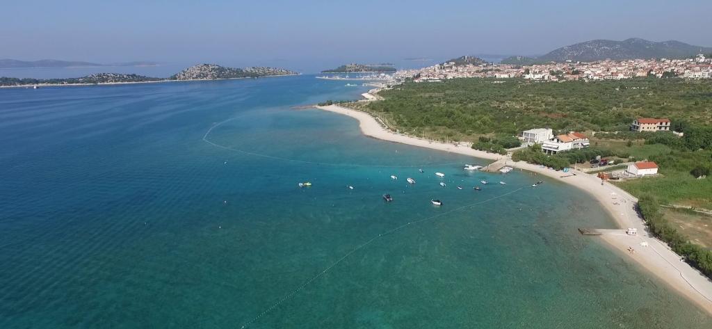 La Villa Lovorka propose des hébergements en première ligne face à la mer, avec une vue imprenable sur les îles, la plage et les environs. Située aux abords de Vodice, dans un quartier calme, elle est idéale pour des vacances reposantes. Nos appartements, labellisés « Comme à la maison », offrent un confort familial haut de gamme. Confortables, ils comprennent 1 ou 2 chambres, une cuisine équipée, un séjour avec coin repas, un hall d'entrée, une salle d'eau avec WC et de grands balcons, la plupart avec vue sur la mer. Un grand parking clôturé est à votre disposition pour les voitures et les remorques à bateaux. Pour vos loisirs, vos divertissements ou vos envies gourmandes, la célèbre plage Bleue, la plage de Vićevica, la plage de Bristak (juste en face de la villa) et la nouvelle promenade reliant Vodice à Tribunj sont à proximité. Nous habitons au rez-de-chaussée toute l'année et sommes ravis d'accueillir nos hôtes. Prestations principales : - Première ligne face à la mer - Balcons spacieux avec vue imprenable sur la mer - Chauffage et climatisation pour un confort optimal - Télévision par satellite, Wi-Fi - Contenus supplémentaires proposés selon vos envies