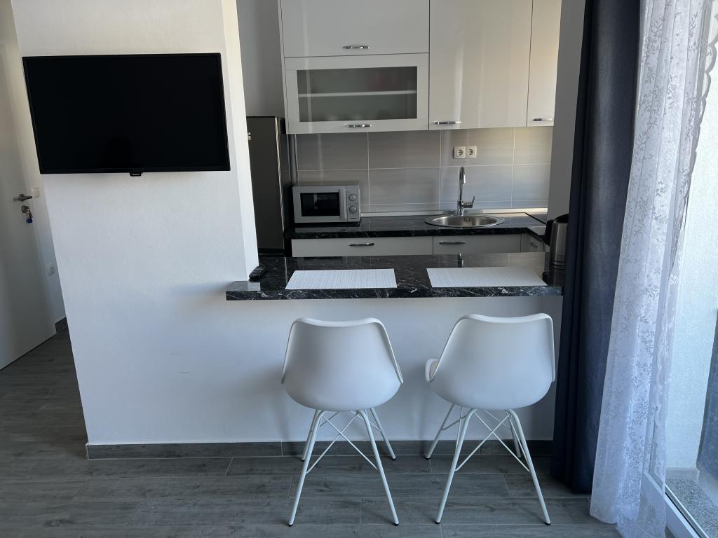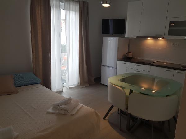 L'appartement est parfait pour une famille de 2 personnes et 1 personne. Il y a un grand lit dans la chambre et un canapé dans la kitchenette. Tout est conforme à la description. La cuisine et la salle de bain sont équipées comme à la maison. La propriétaire est très sympathique. Elle et sa fille prennent soin des appartements, s'assurant qu'ils sont propres et parfaitement préparés pour les nouveaux locataires. Notre appartement avait un petit balcon avec des chaises, parfait pour le petit-déjeuner et le café. Le quartier est calme, proche de la plage et d'une boulangerie proposant de délicieux petits pains et pizzas à la part. Je le recommande vivement, d'autant plus que c'est mon deuxième séjour ici.