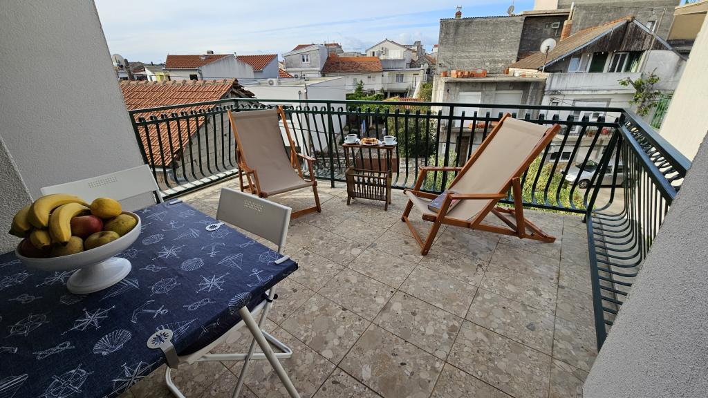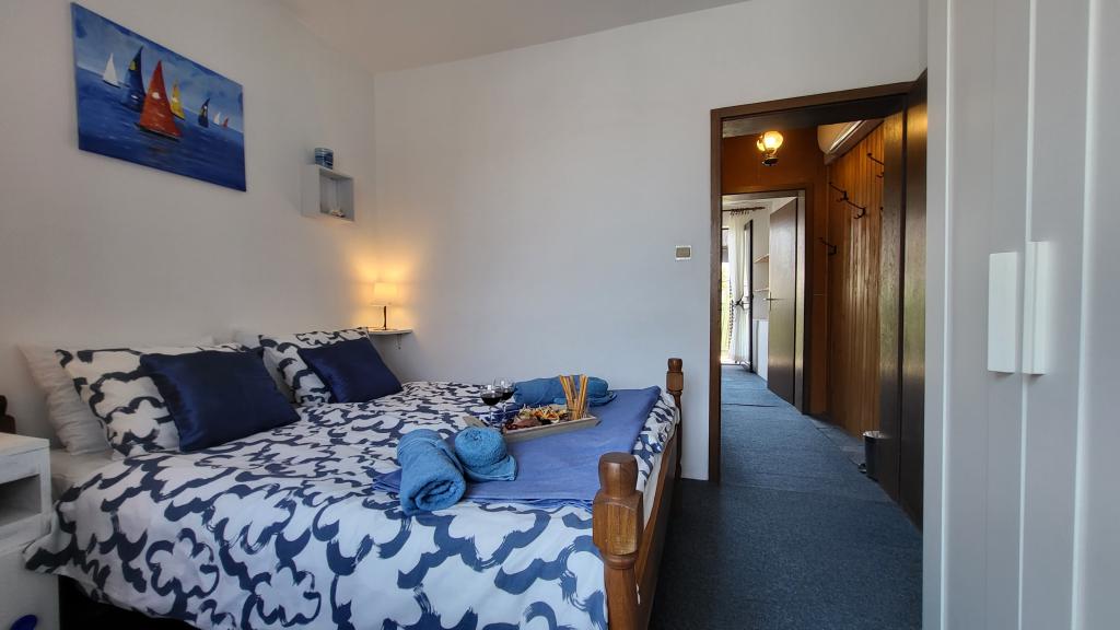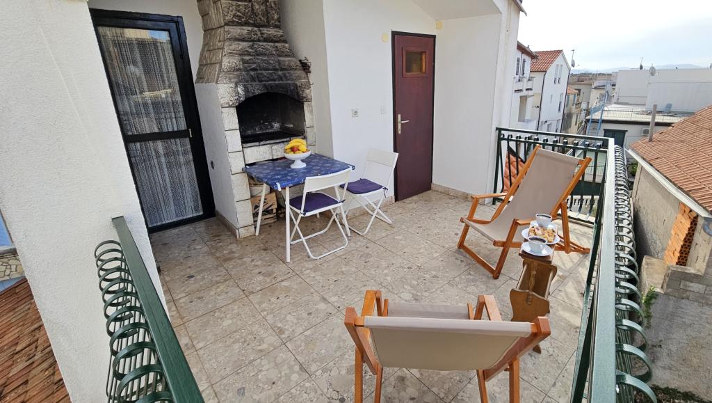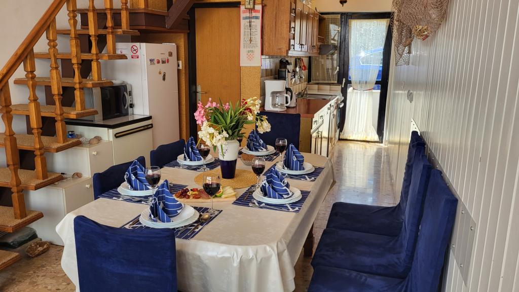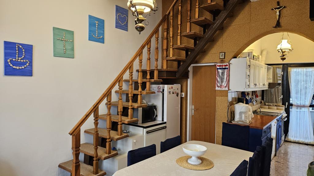 Bienvenue à la maison de vacances Perlica, située en plein centre de Vodice, au 59 rue Brunac, à seulement 280 m de la mer. Idéale pour les familles, cette maison offre un accès facile à toutes les commodités, sans avoir besoin de voiture. Un magasin se trouve à 120 m, un restaurant à 150 m, la vieille ville de Vodice à 200 m, une plage de galets à 400 m et la plage de sable fin de Vodice, labellisée Pavillon Bleu, à 550 m. La maison dispose de 3 chambres avec lits doubles pour 6 personnes + 1 lit d'appoint, 2 salles de bain, 2 balcons, une grande terrasse avec barbecue intégré, la climatisation, une télévision, le Wi-Fi et un lave-linge. La cuisine est entièrement équipée : lave-vaisselle, grand réfrigérateur (308 L), congélateur séparé (3 tiroirs), plaques de cuisson, micro-ondes, cafetière, grille-pain, bouilloire, couverts et ustensiles de cuisine. Une place de parking gratuite est mise à votre disposition. Perlica est une propriété indépendante où les clients bénéficient d'une intimité totale durant leur séjour à Vodice, un centre touristique réputé de Croatie, situé sur l'une des parties les plus diversifiées et pittoresques de la côte dalmate.
