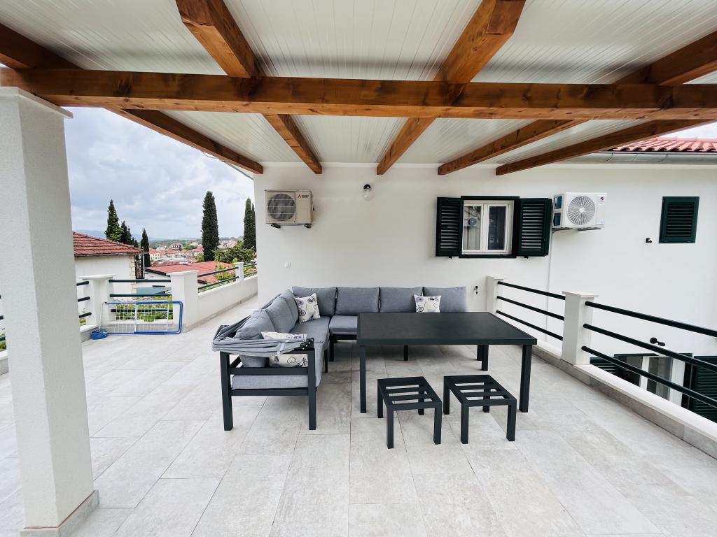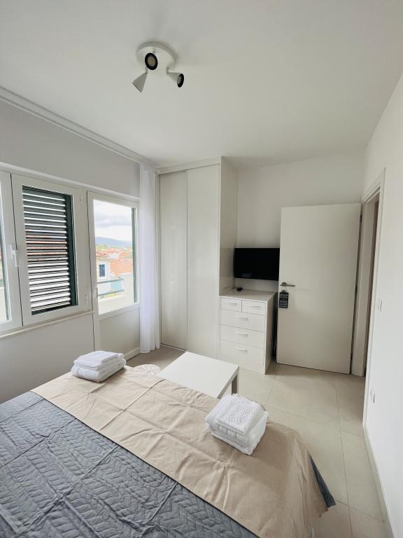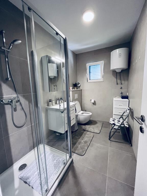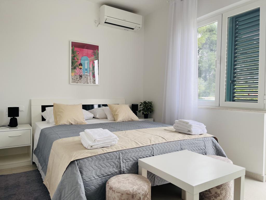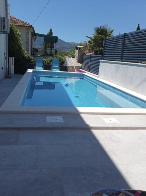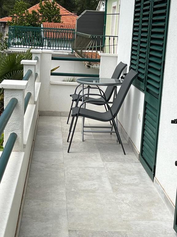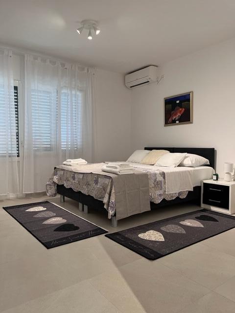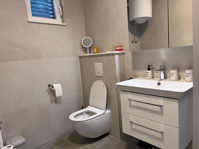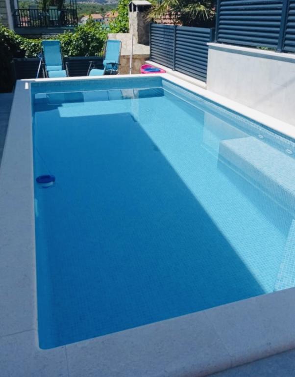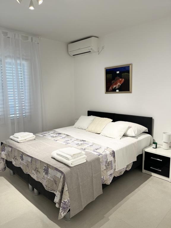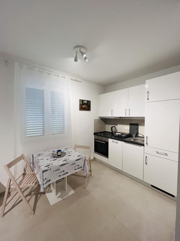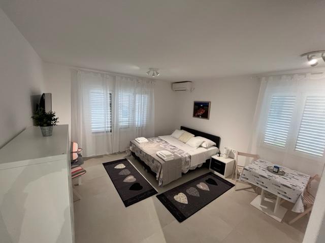 Les appartements se composent de deux logements séparés d'une superficie de 40 m2 et 33 m2 au premier étage d'une maison indépendante avec jardin, située dans la belle ville dalmate de Vrboska sur l'île de Hvar, également appelée Little Venise. La maison se trouve à environ 200 mètres du centre-ville, où se trouvent des magasins, des restaurants, un bureau de poste, etc., ainsi que de la mer. Les deux appartements ont été récemment rénovés, modernes, climatisés et entièrement équipés. Les clients disposent de la télévision par satellite, d'une connexion Wi-Fi gratuite et d'un coffre-fort. Les deux appartements ont un balcon, le plus petit a une terrasse couverte de 10 m2, tandis que le plus grand a une terrasse couverte de 30 m2. Les deux appartements ont la possibilité de partager une belle piscine privée avec équipements associés (transats, douche...). Un studio pour 2 personnes se compose d'une terrasse, d'une entrée, d'une salle de bain avec WC, d'un séjour avec cuisine et d'une chambre, tandis qu'un appartement pour 4 personnes se compose d'une cuisine avec une salle à manger, un hall, une salle de bain avec WC, 2 chambres et terrasses