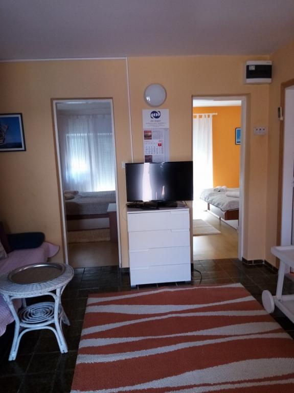 La maison est située dans la troisième rangée de la mer. Le jardin dispose d'un barbecue et a une place pour les besoins de la liaison d'un bateau, si le client le désire. Le prix comprend la pizza dobrodoslive, et l'utilisation du climat et de taxes. l'objet est d'aller vers la plage de la baie, et la plage va se promener le long de la mer à travers la forêt de pins.