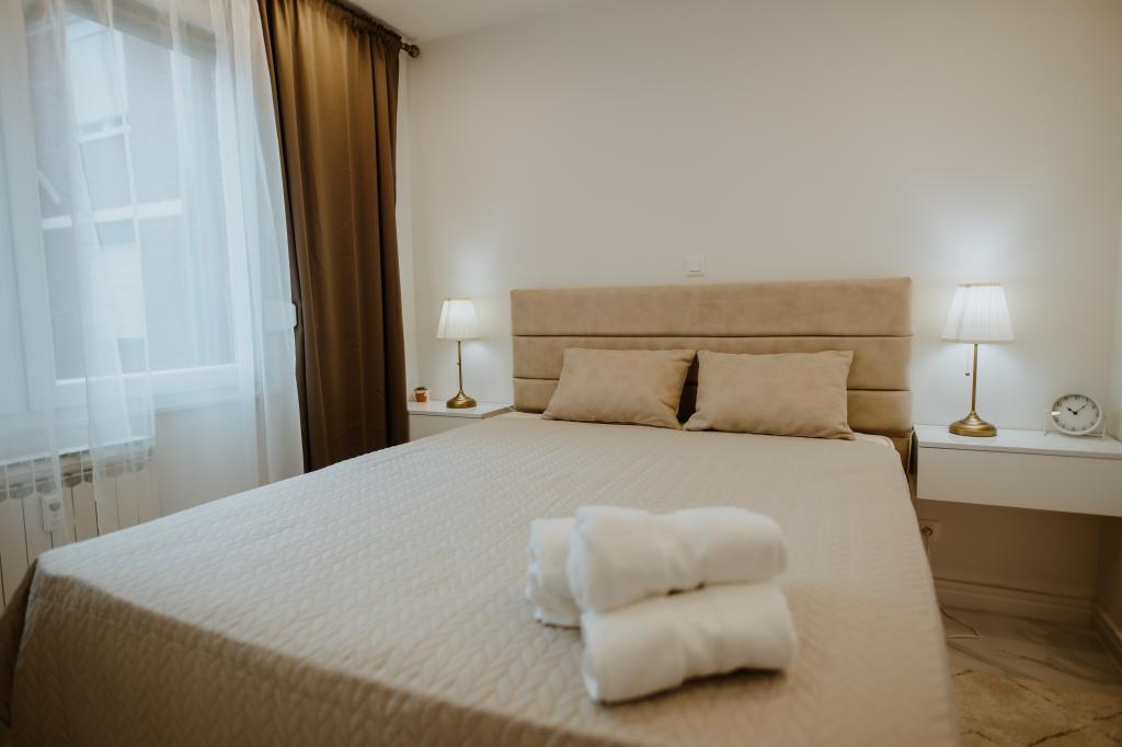 Nous vous souhaitons la bienvenue dans la ville de Vukovar et dans notre appartement luxueusement décoré avec l'espoir que vous quitterez Vukovar avec des impressions inoubliables ! L'appartement a une superficie de 59 m2, est classé 4 étoiles et équipé de meubles sur mesure, d'une grande télévision à écran plat et d'une connexion Wi-Fi gratuite, climatisé, avec une grande loggia pouvant être fermée avec un store avec une télécommande si nécessaire et tous les appareils électroménagers (lave-linge, sèche-linge, lave-vaisselle, réfrigérateur avec congélateur, four, plaque de cuisson encastrée). L'appartement offre un hébergement confortable pour un maximum de 4 personnes avec un confort et un équipement exceptionnels, et une place de parking gratuite est prévue pour les clients de l'appartement. De la chambre, il y a une vue sur la rivière Vuka, le symbole de Vukovar - le château d'eau et les clochers des églises de Vukovar. A proximité du bâtiment se trouvent de nombreuses installations sportives, une promenade le long de la rivière Vuka qui mène au confluent de la Vuka et du Danube, il se trouve à 550 m du centre-ville et à proximité immédiate de tous les sites et institutions de la ville. . Bon séjour!