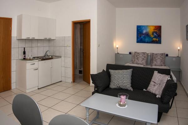 Des hôtes très agréables et hospitaliers, discrets et très gentils et agréables. Tout était super, comme sur les photos et comme convenu. Dans le logement vous avez tout ce dont vous avez besoin, tout est neuf et propre c'est le plus important de tout.Sur l'immense terrasse il y a un grand transat avec une belle vue sur la mer qui est à 50 m. Tellement beau Nous avons séjourné du 06.08 au 12.08 2023 Je le recommande vivement à toutes les personnes qui recherchent la paix et la détente et pourtant si proches de Šibenik où elles peuvent se détendre.
