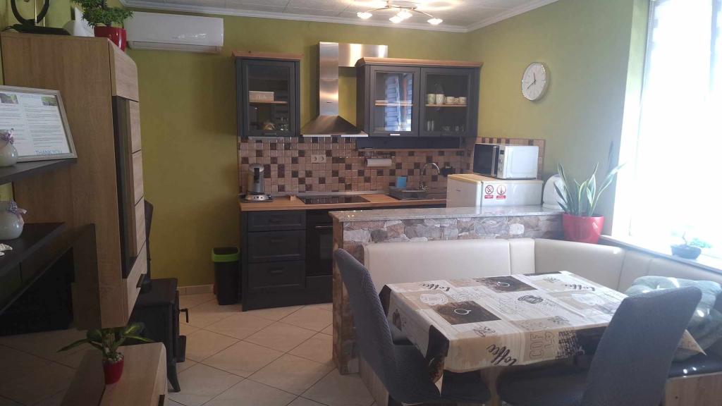 L'appartement a tout, des appareils électroménagers, de la vaisselle, du savon, de la poudre à vaisselle, des serviettes, de la climatisation ... qui devrait avoir plus que cela (machine à laver), la taille est sombre, la terrasse sous la vigne est idéale pour s'asseoir et profiter de la soirée. Tout est neuf et superbement propre. Les hôtes sont ouverts et joyeux, toujours là si vous en avez besoin, mais en revanche discrets et ne violent pas la vie privée du client. Nous avons été accueillis par des boissons fraîches dans le réfrigérateur. Les plages sont à 5 ou 10 minutes à pied. Super endroit pour des vacances plus faciles et pour chaque recommandation!