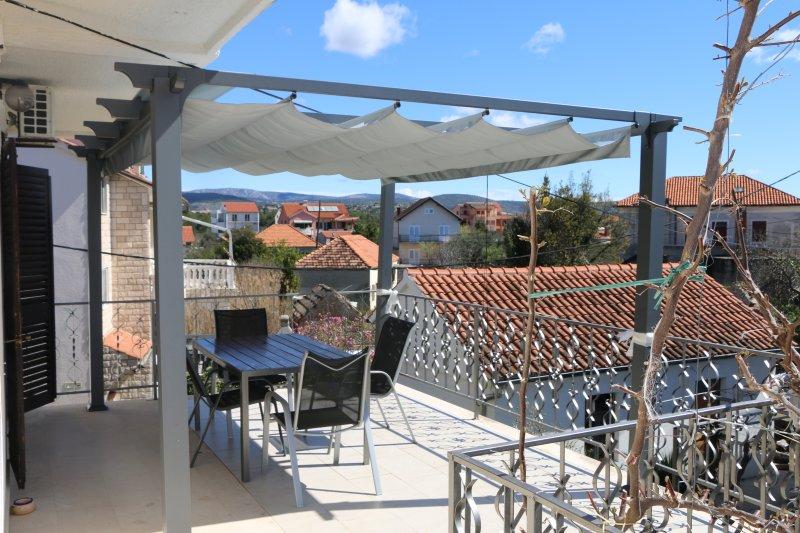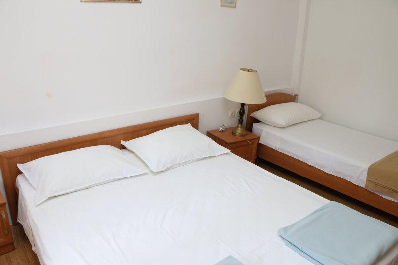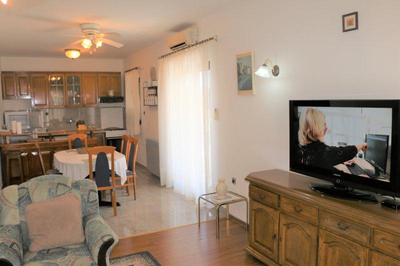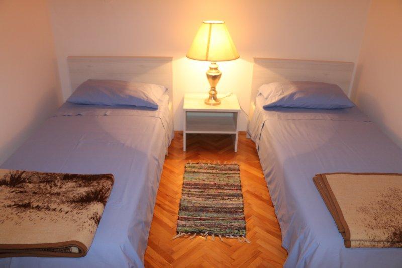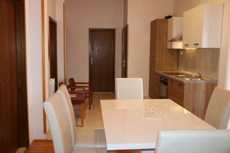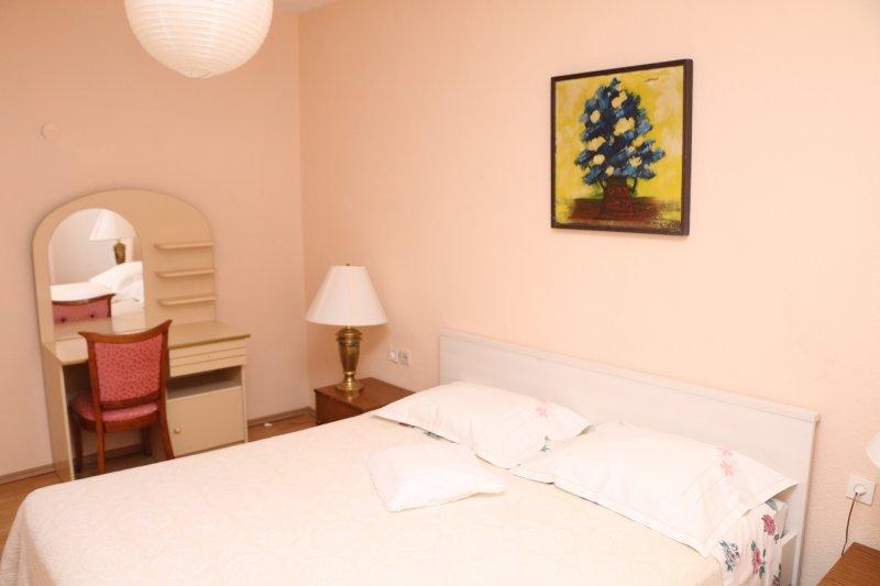 Appartements entièrement équipés dans le centre de Zablac, à 50 mètres de la mer et à 200 mètres de la plage, sur le côté sud de la plage de ciment dans la vieille pinède et sur le côté ouest de la plage de galets (naturels). Une promenade de dix minutes sépare les appartements du complexe hôtelier SOLARIS et à moins de 2 kilomètres de plages superbement décorées avec une variété d'installations pour les sports et les loisirs ainsi que la meilleure offre gastronomique et de divertissement de jour comme de nuit. De ces quelques mots pour conclure que chaque tranche d'âge peut répondre à ses besoins et profiter de vacances dans nos appartements. Tous les appartements sont entièrement équipés avec tout l'inventaire nécessaire pour un séjour confortable. Place de parking devant la maison.