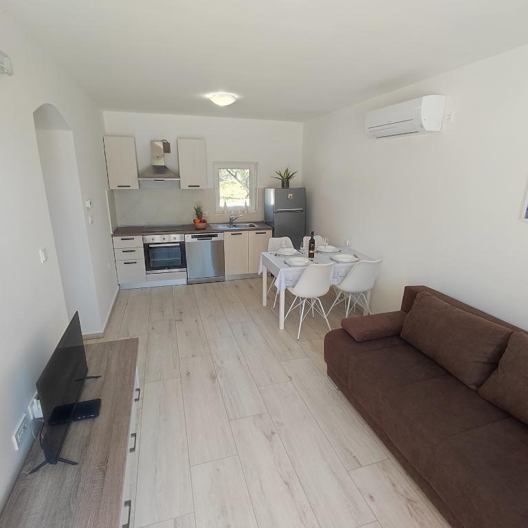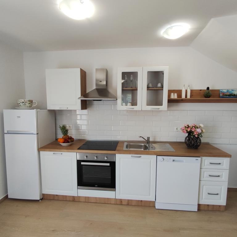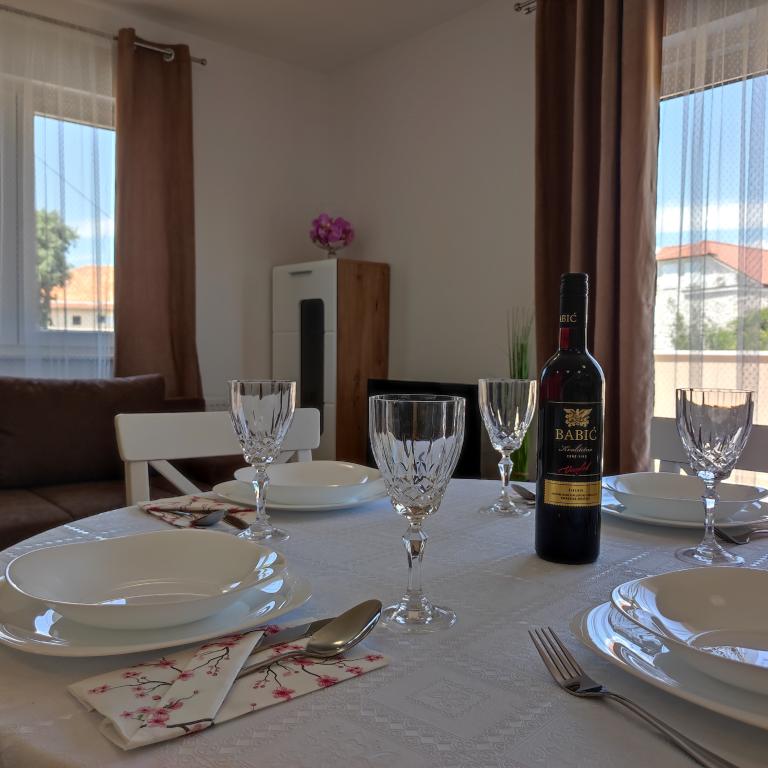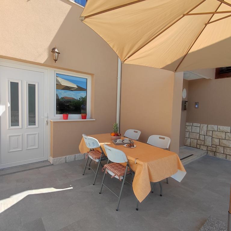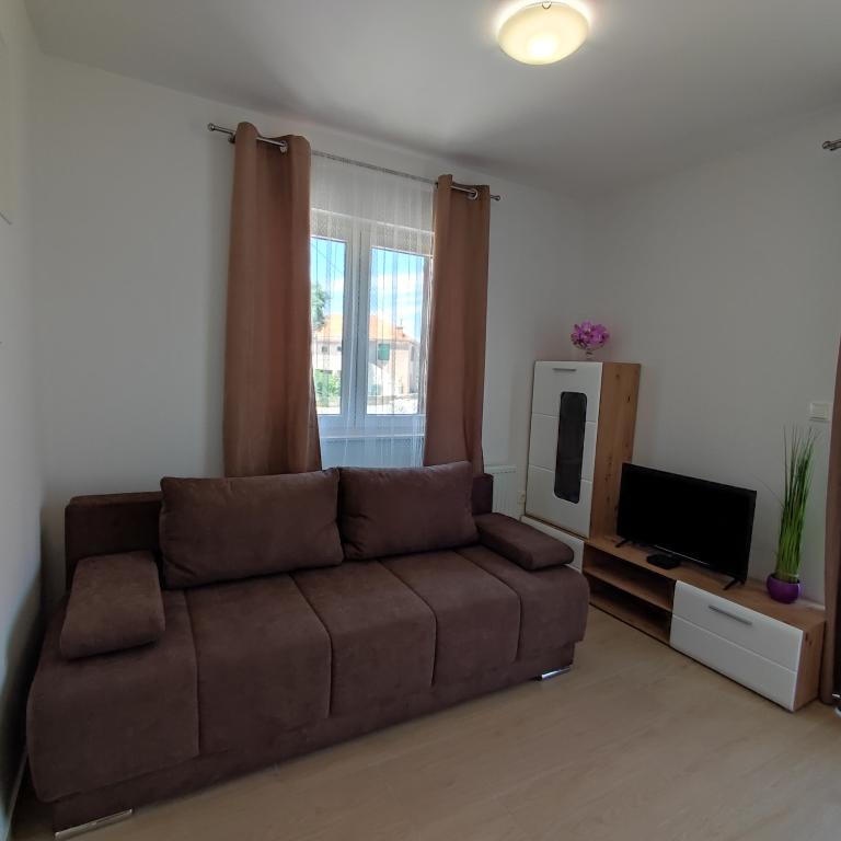 Marína, l'hôtesse, nous a accueillis très gentiment et chaleureusement. L'appartement était magnifique, ça sentait le propre. L'hébergement est créé pour la détente, sans aucun bruit. Notre voiture a apprécié d'être garée au frais sous l'arbre. Belle mer à environ 200 m.Possibilité de se promener le long de la mer. En outre, la possibilité d'une belle plage avec une douce entrée dans la mer à environ 5 min. voyages en voiture - parc Amadria, également adapté aux petits enfants.