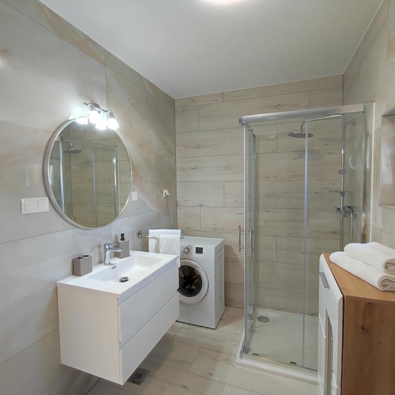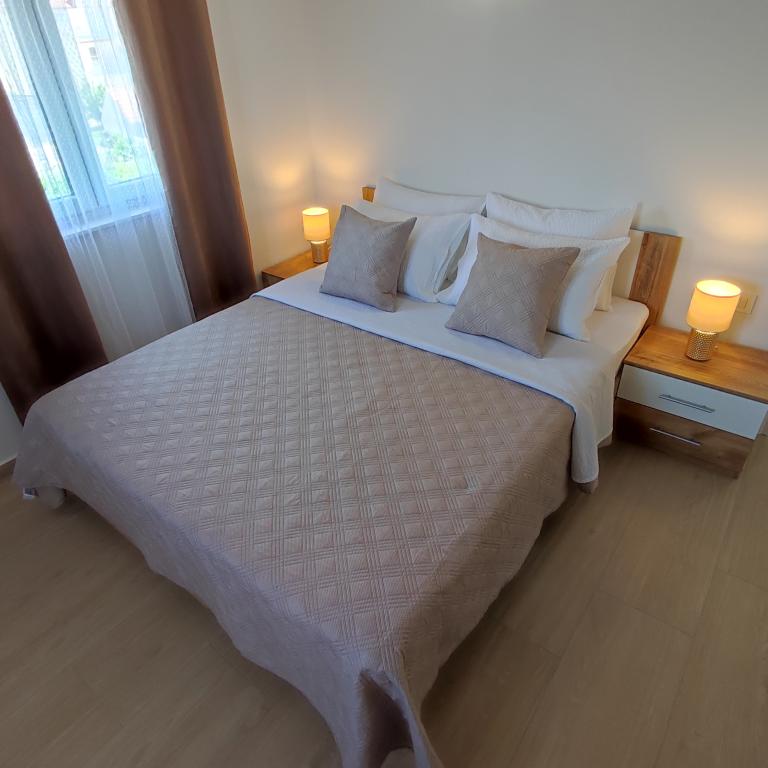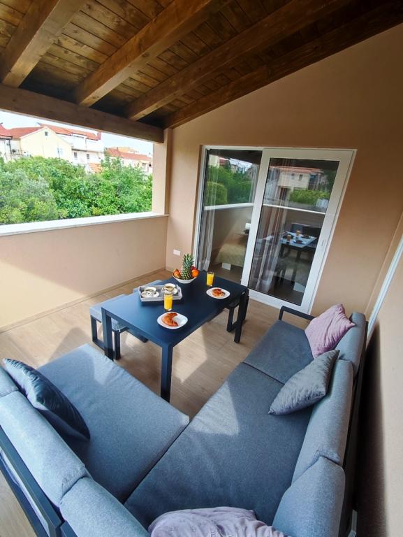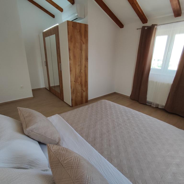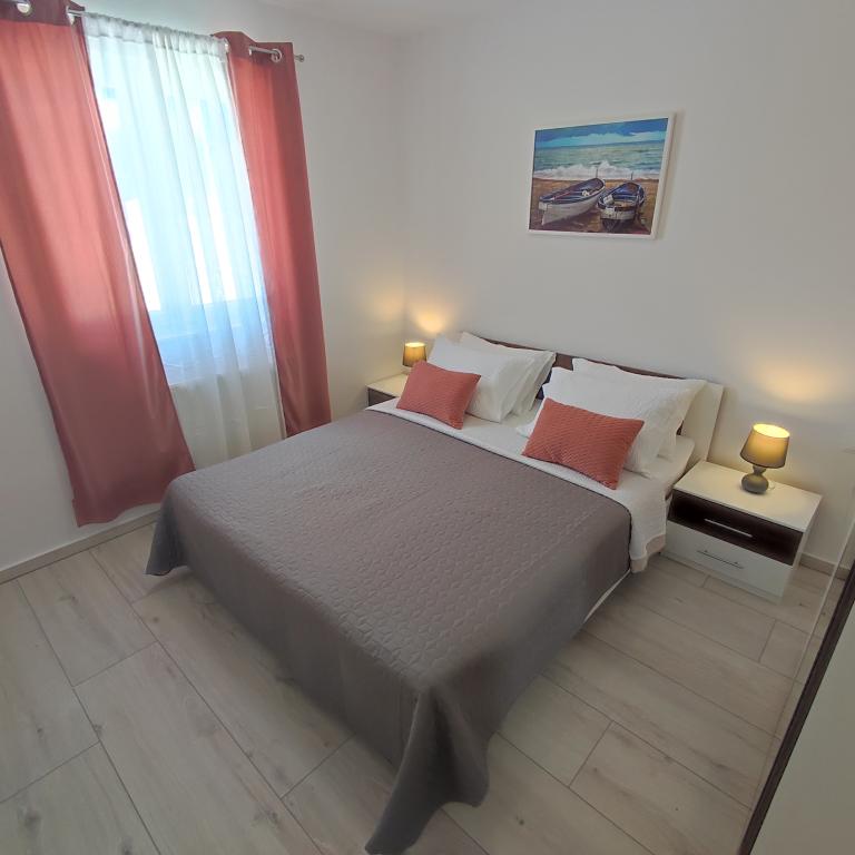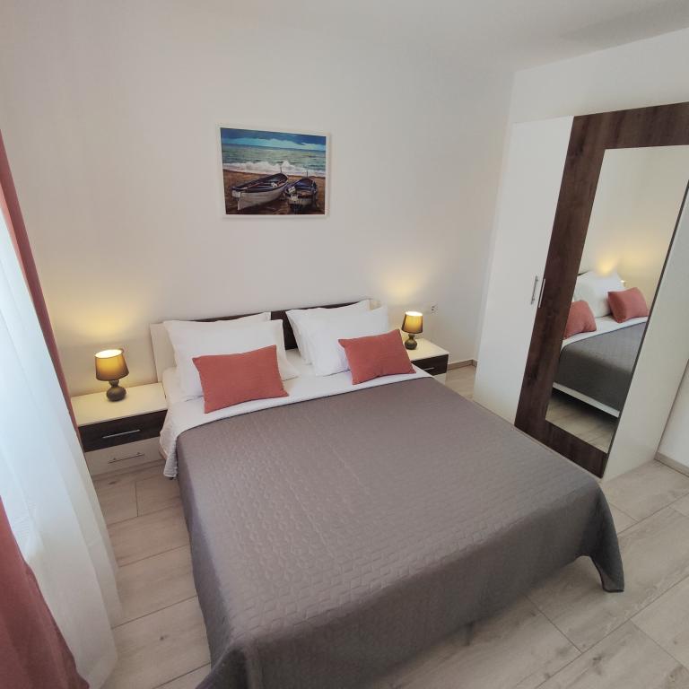 Marína, l'hôtesse, nous a accueillis très gentiment et chaleureusement. L'appartement était magnifique, ça sentait le propre. L'hébergement est créé pour la détente, sans aucun bruit. Notre voiture a apprécié d'être garée au frais sous l'arbre. Belle mer à environ 200 m.Possibilité de se promener le long de la mer. En outre, la possibilité d'une belle plage avec une douce entrée dans la mer à environ 5 min. voyages en voiture - parc Amadria, également adapté aux petits enfants.