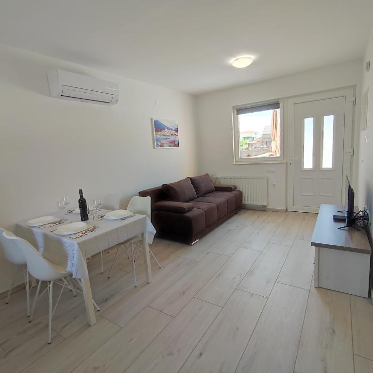 Excellent hébergement, appartement impeccablement rangé, décoré et meublé pour des vacances reposantes. Une grande terrasse pour socialiser agréablement, une entrée séparée à l'appartement et c'est vraiment calme... Nous avons été dans beaucoup d'appartements différents, mais celui-ci est le meilleur ! La propriétaire Marina est très agréable, gentille et discrète, nous sommes reconnaissants pour les petits signes d'attention lors de notre séjour. Il y a une place de parking à l'ombre d'un grand arbre koštela. En gros, idéal pour aller se baigner, aller en ville, commerces, restaurants. Possibilité de revenir!
