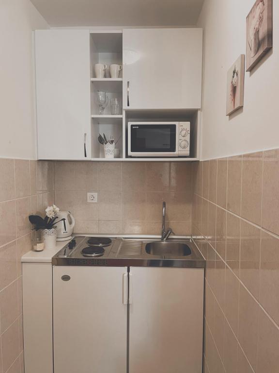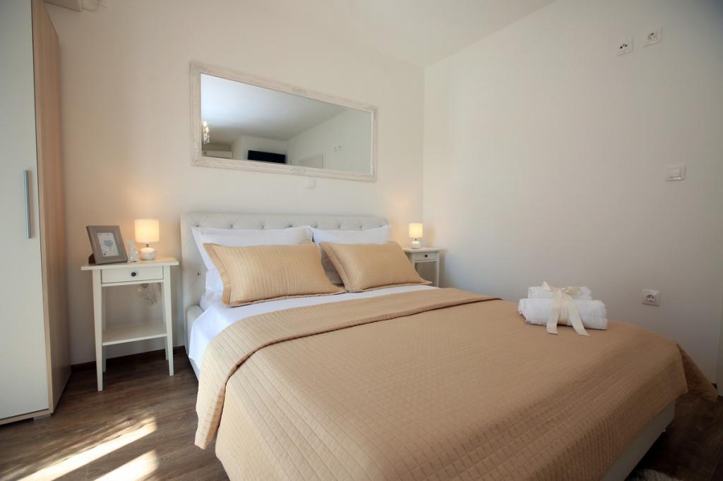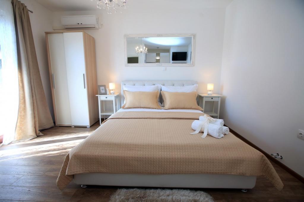 Tous les éloges aux merveilleux hôtes Zoran et Vera, le brandy de caroube et le poisson sous le couvercle de la cuisson comme petit signe de bienvenue étaient l'introduction parfaite à de vraies vacances! Près de la plage (même si c'est à 1 minute), un appartement mignon et moderne, un jardin de rêve, une terrasse pour le café du matin et le soir pour socialiser ! Mes poussins et moi l'avons apprécié au maximum!
